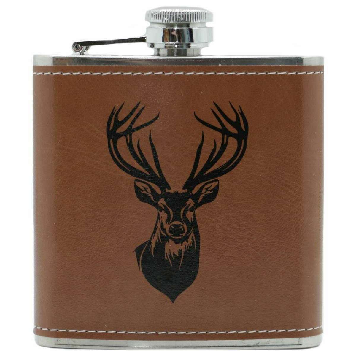 David van Hagen Stag Design 6oz Hip Flask - Brown / Silver