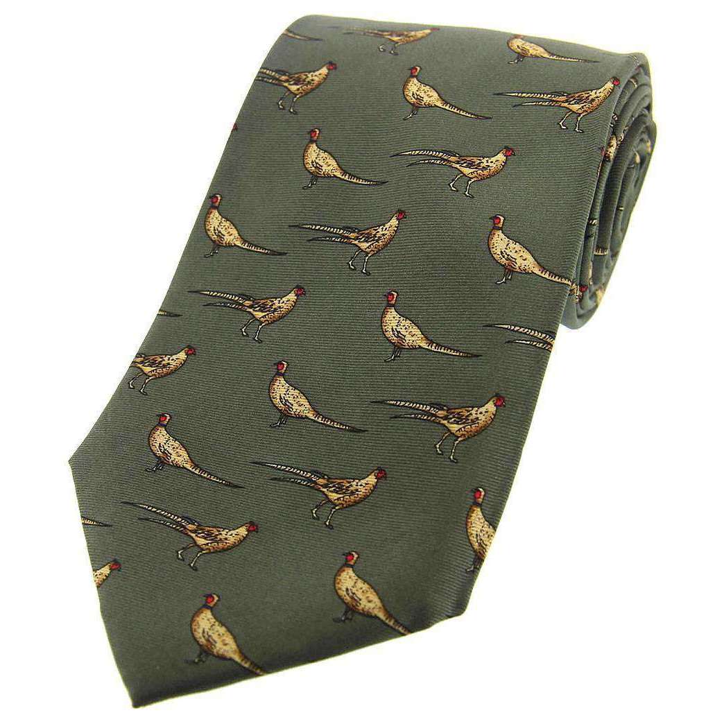 David van Hagen Standing Pheasans Country Silk Tie - Country Green
