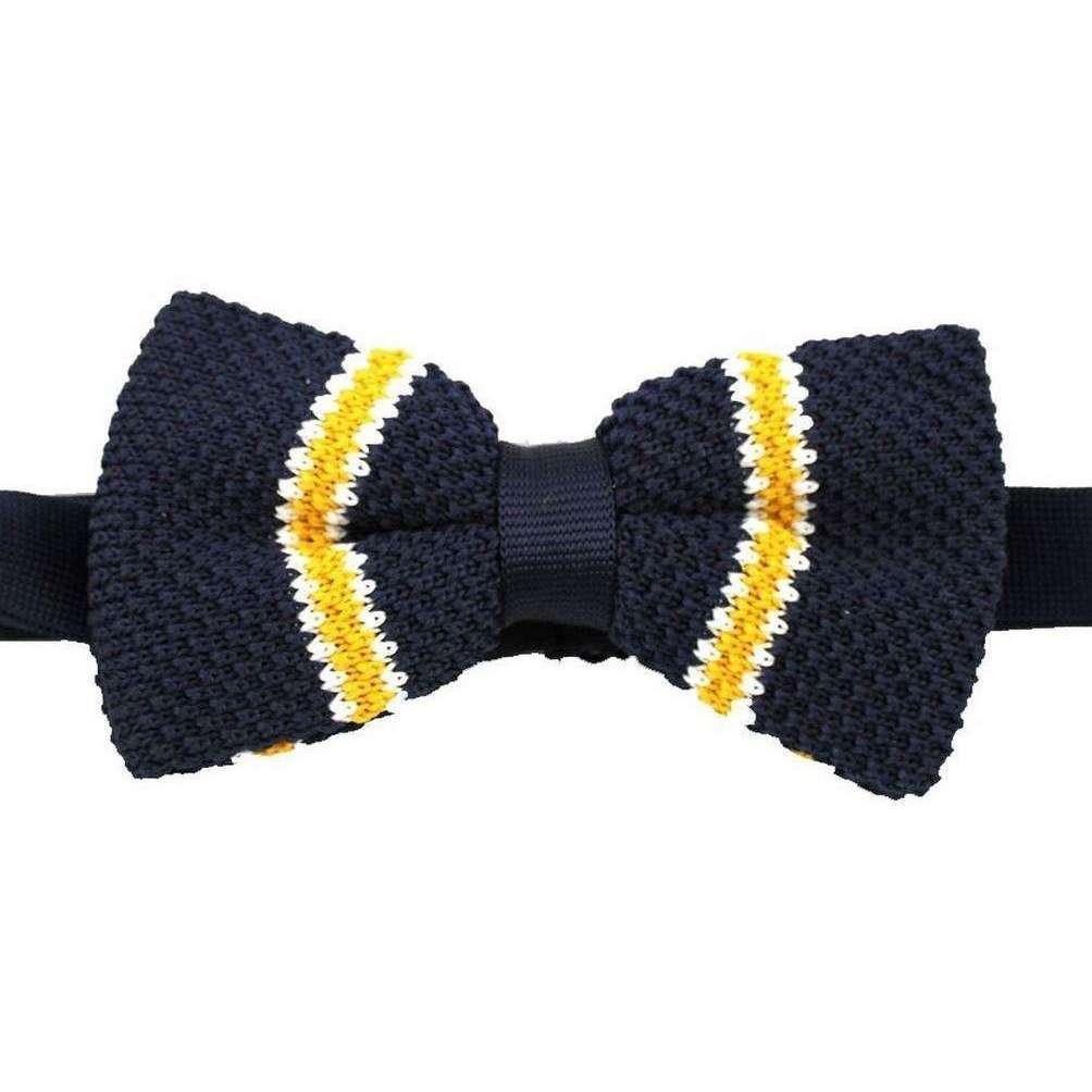 David van Hagen à noix de papillon en polyester tricoté - marine / jaune / blanc