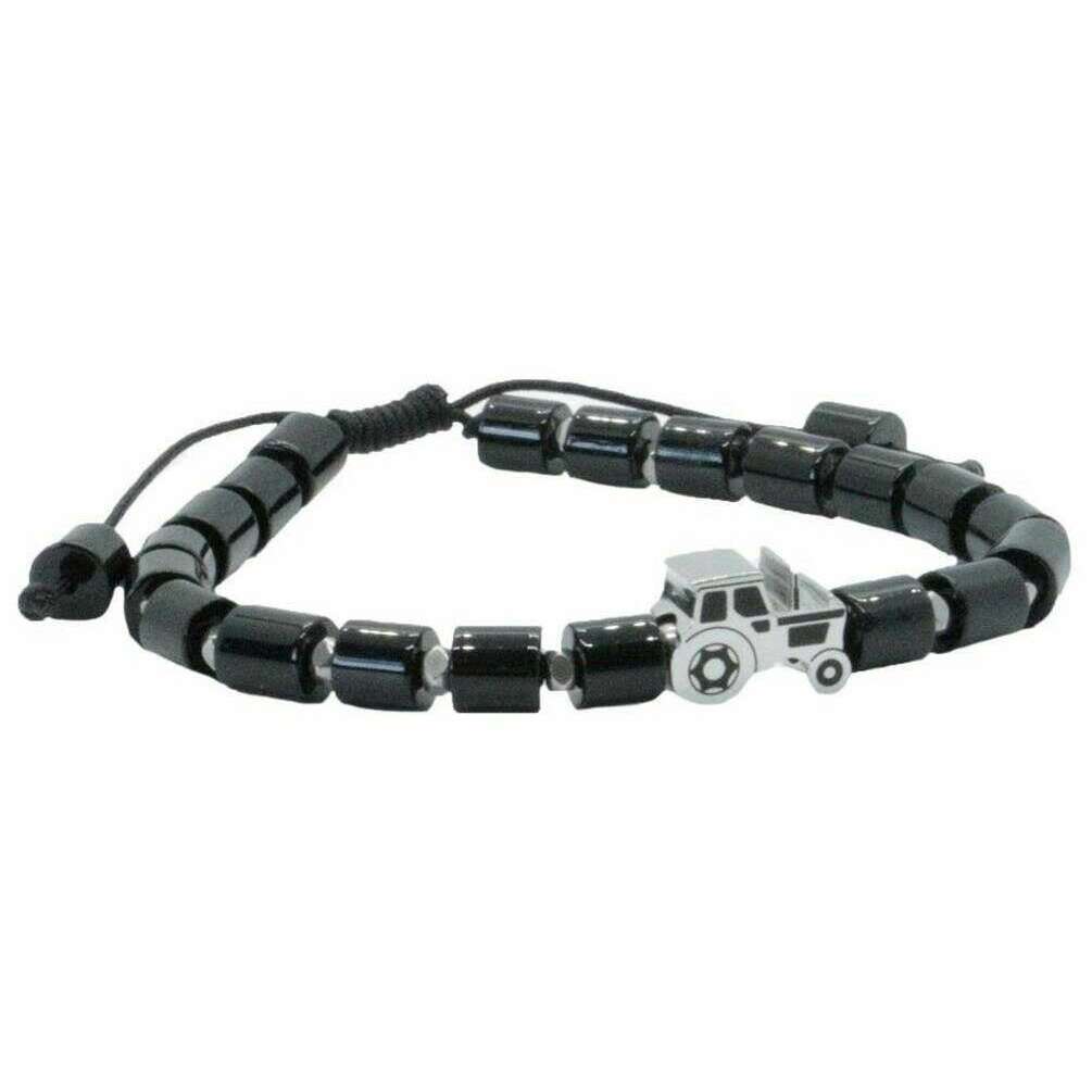 Bracelet en agate avec perles de tracteur David Van Hagen - Noir