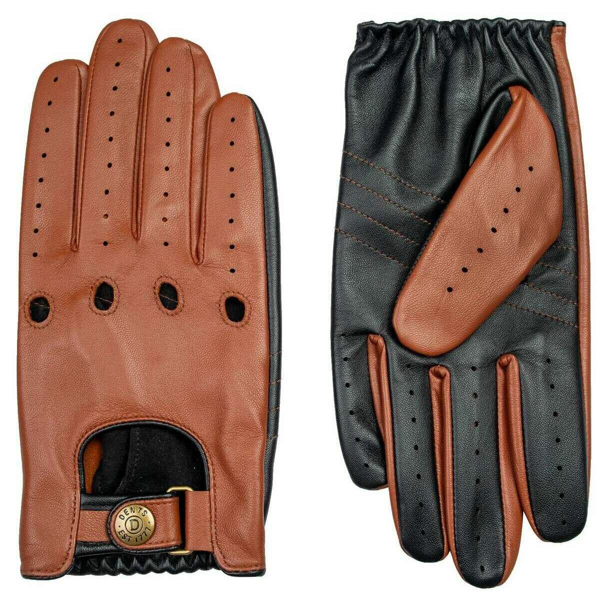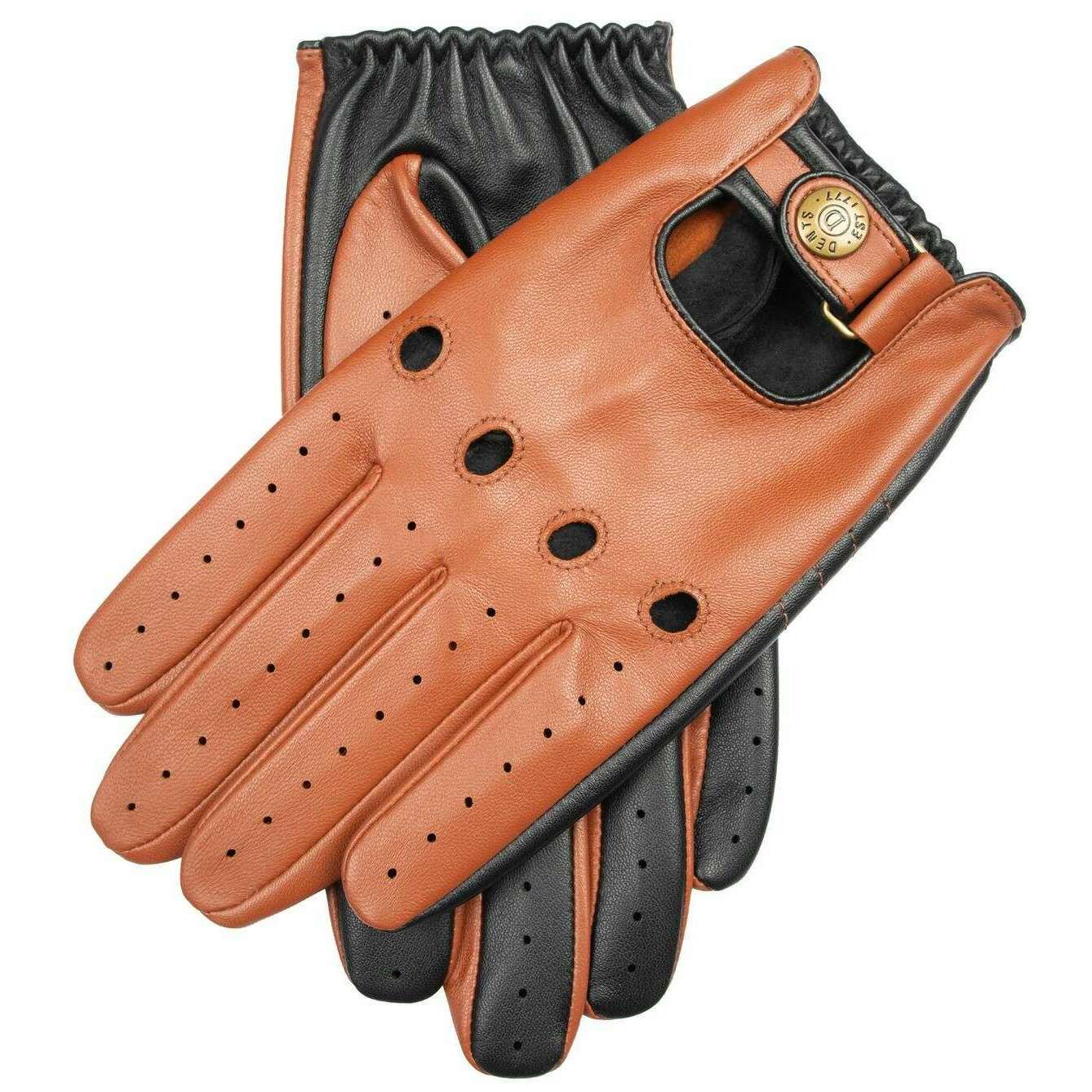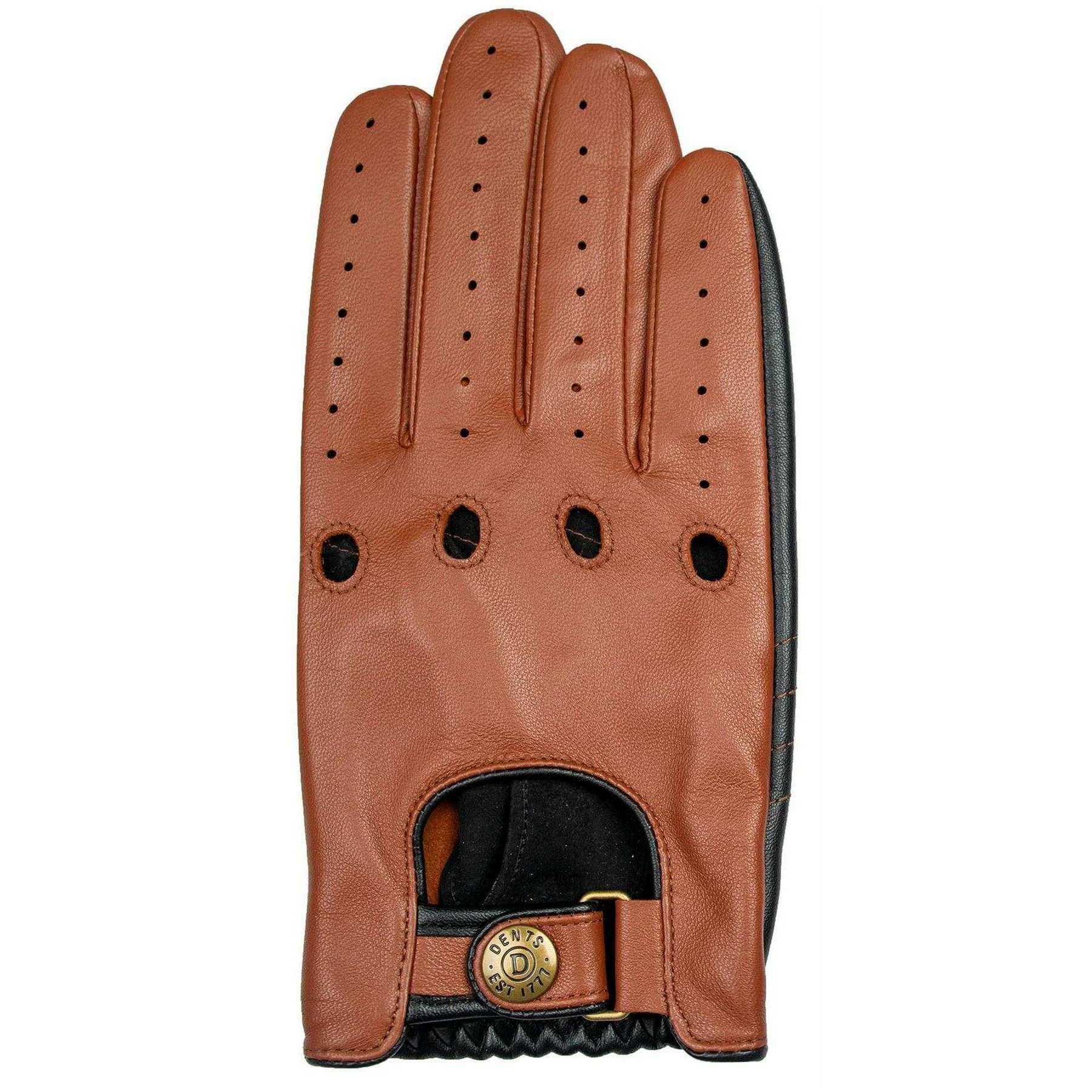 Gants de conduite en cuir bicolore Dents Aintree - Marron cognac/noir