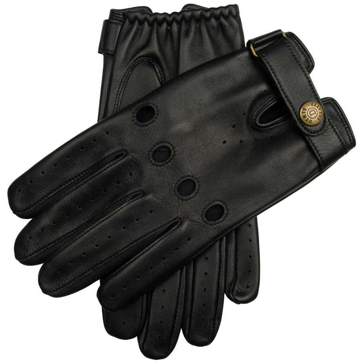Ces gants de conduite en cuir Brooklands pour hommes sont confectionnés par la marque Dents dans une couleur noire et sont fabriqués à 100% en cuir de mouton. De plus, les gants noirs sont conçus dans un motif uni. Tous les gants sont livrés avec des étiquettes de bosses. Les gants de conduite en cuir Dents Brooklands - Noirs offrent une touche différente des gants de conduite habituels car ils ne comportent pas de dos découpé, ce qui leur donne une finition unique. Les gants présentent des détails complexes tels que des trous perforés sur les doigts et les paumes, des trous pour les jointures et des coutures intérieures pour une finition soignée. Il est doté d'une dragonne à fermeture centrale avec des poignets élastiqués et un bouton de fixation Dents pour offrir au porteur un ajustement sûr et confortable.