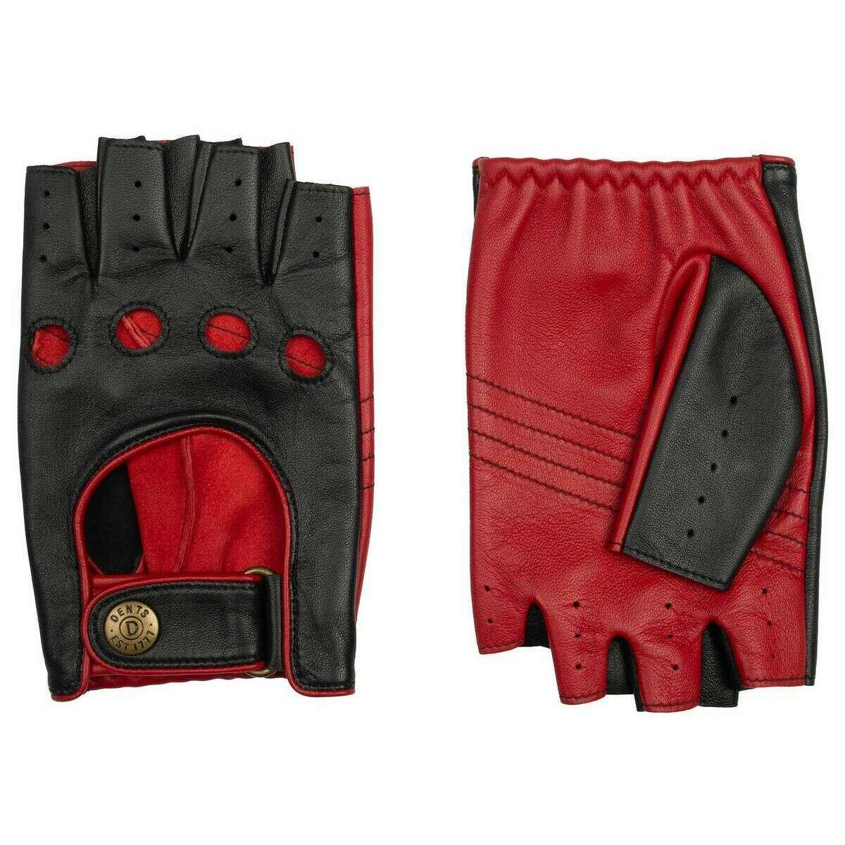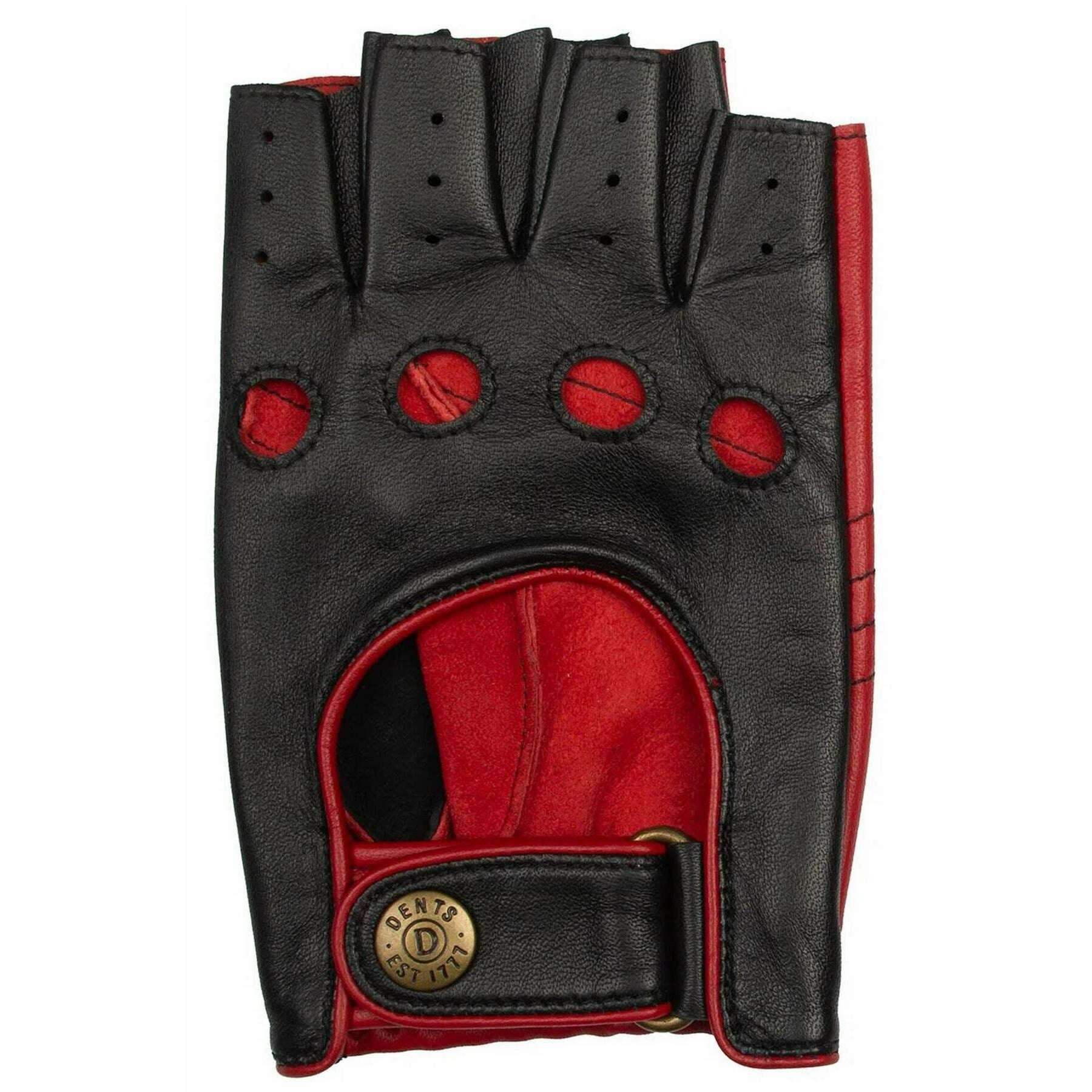 Gants de conduite en cuir bicolores sans doigts Dents Cadwell - Noir/Rouge baie