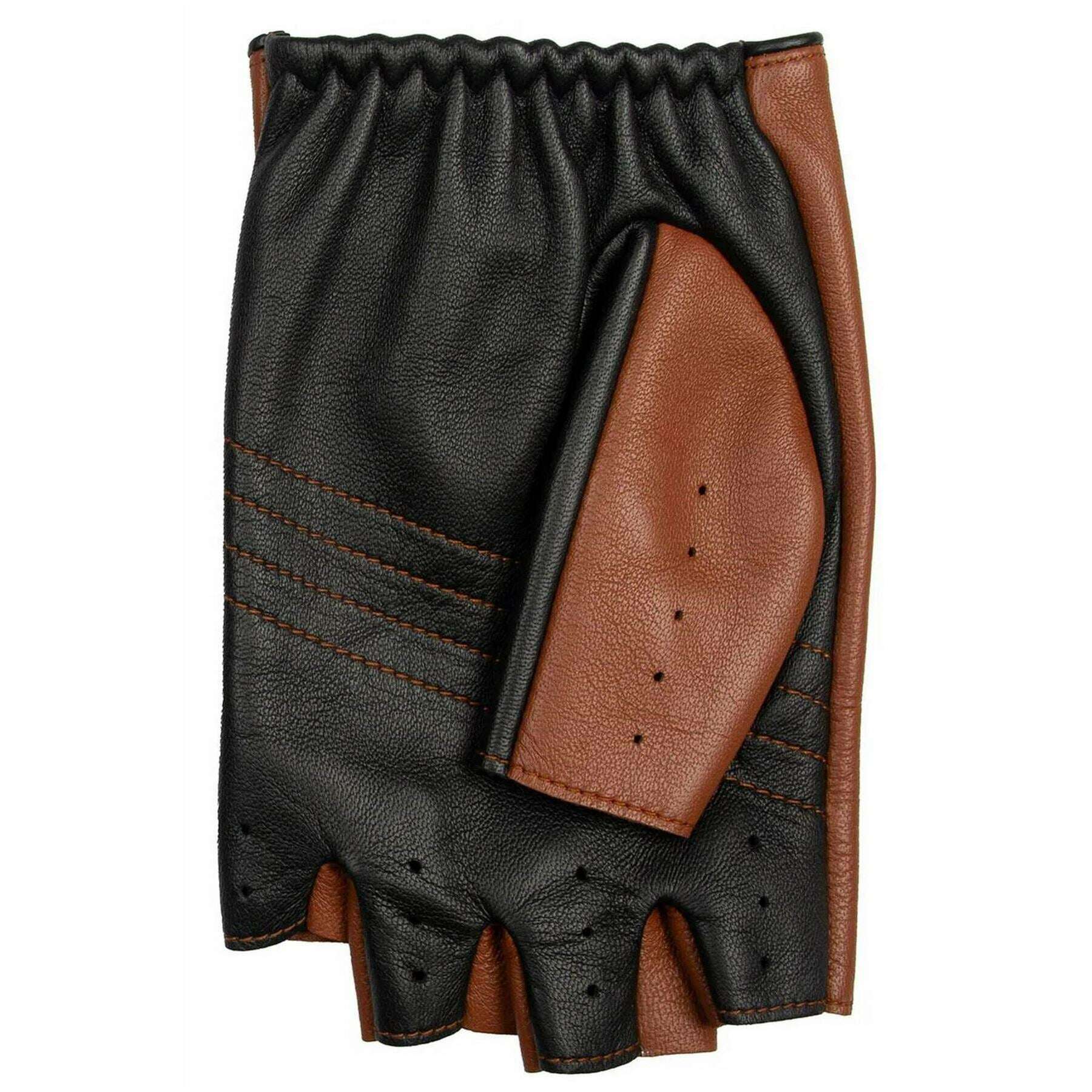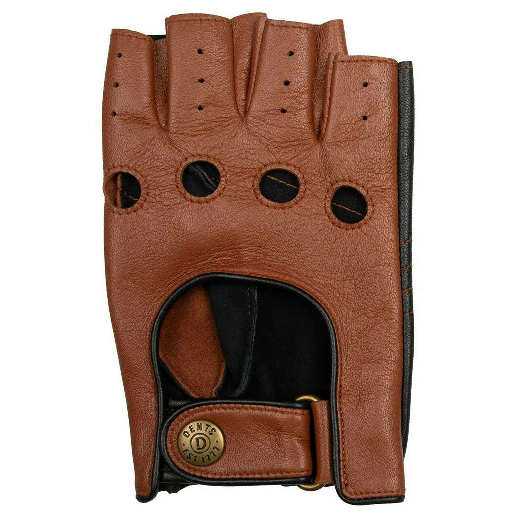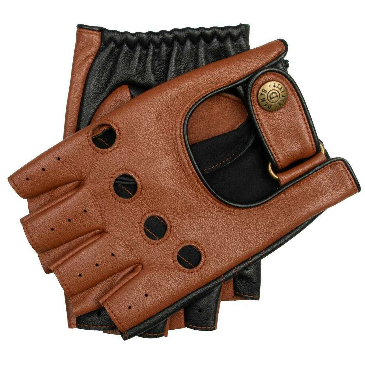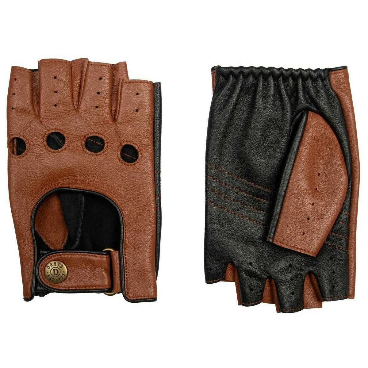 Gants de conduite sans doigts en cuir bicolore Dents Cadwell - Marron cognac/noir