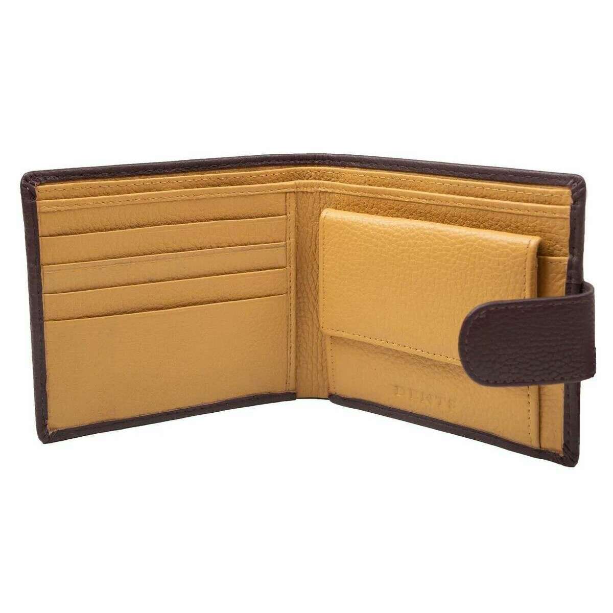 • Technologie de blocage RFID , 4 emplacements pour cartes de crédit , Double compartiment pour billets , Poche pour la monnaie , 2 poches plaquées , Fermoir à bouton-pression