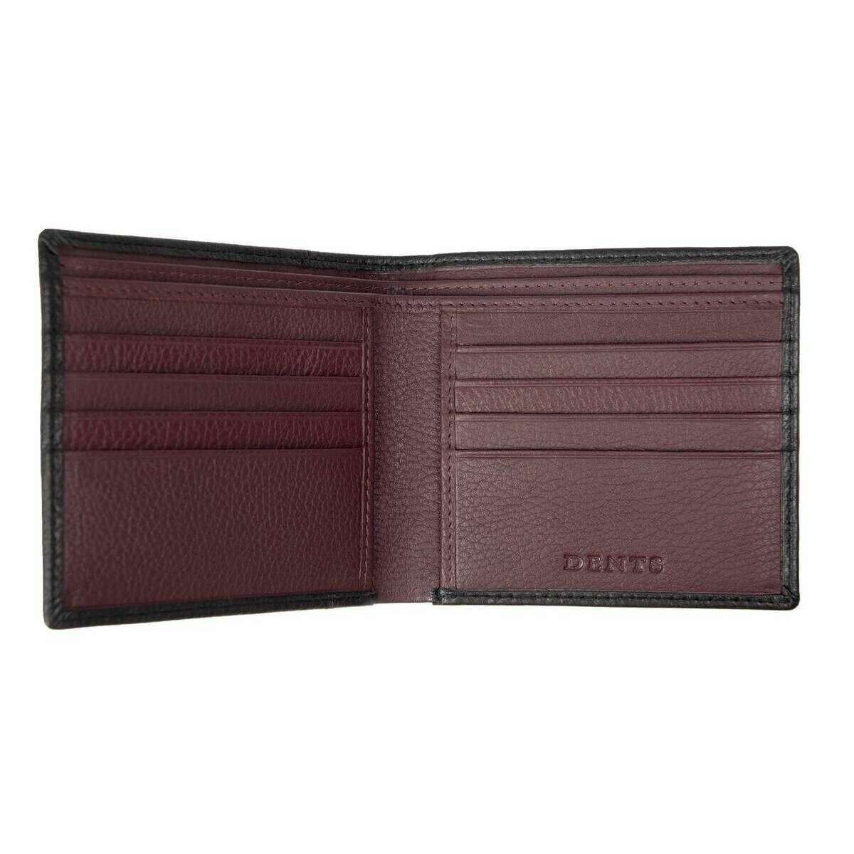 Ce portefeuille à deux volets mince Cherwell pour hommes a été fabriqué à 100 % en cuir grainé, de couleur noire et provient de la marque Dents. Il mesure 10 cm (hauteur) x 11 cm (largeur). Tous les portefeuilles sont livrés avec des étiquettes bosselées. Le portefeuille à deux volets Dents Cherwell Slim - Noir/Bordeaux Bordeaux comprend huit poches pour cartes, deux sections pour billets et deux poches plaquées, ce portefeuille à deux volets est le cadeau parfait ! Le panneau intérieur porte le logo Dents en relief donnant au portefeuille un look sophistiqué. Doublé de tissu poly sergé pour un look lisse et gracieux, cet accessoire élégant a une élégance décontractée.