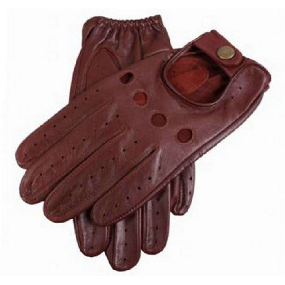 Ces gants de conduite en cuir non doublés pour hommes classiques par des bosses présentent une découpe à l'arrière, des trous de jointure et un bouton de fermeture de fermeture de bosses à l'arrière.