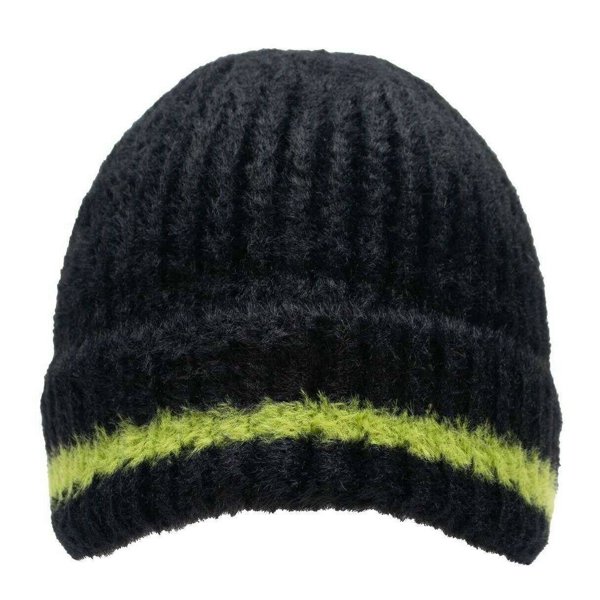 Bonnet en fil de plumes Dents - Noir/Vert citron