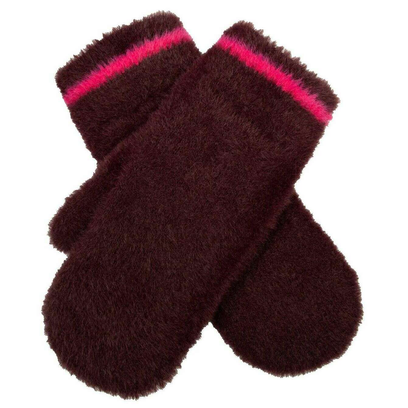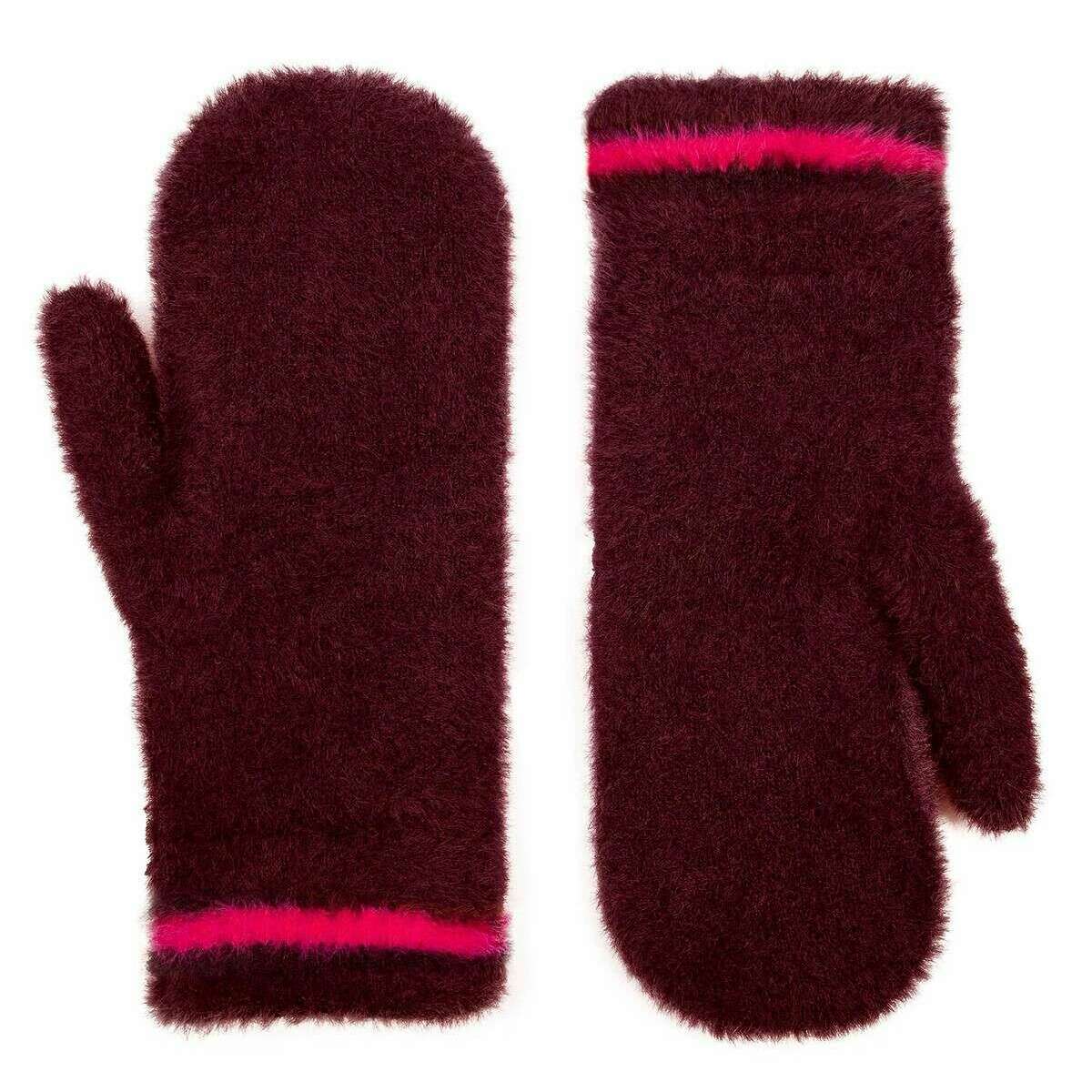 Dents Feather Yarn Mittens - Bourgogne / rose