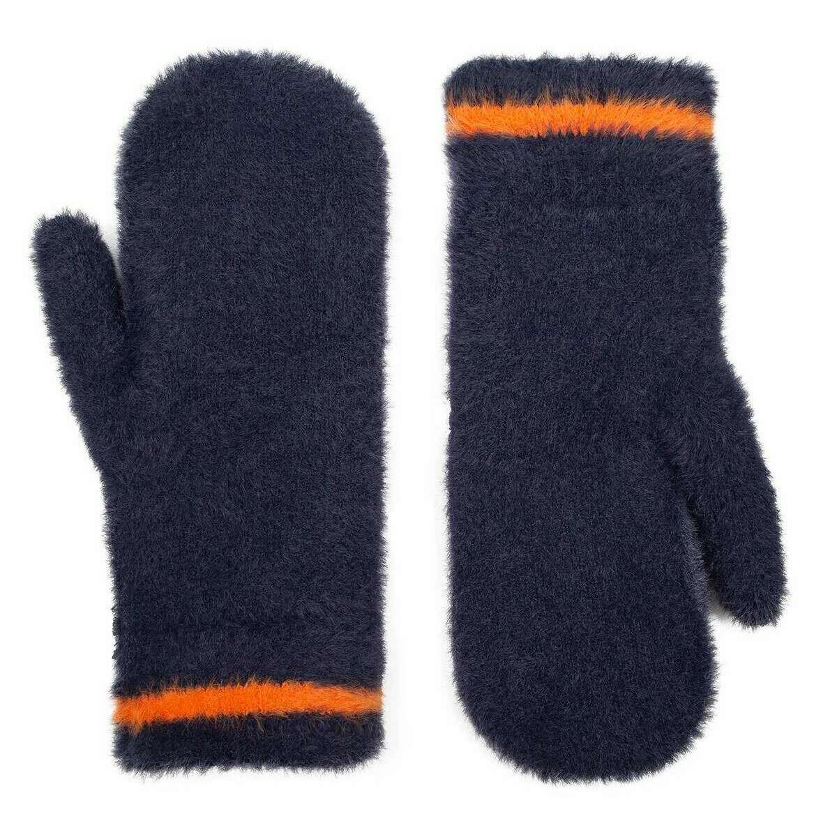 Dents Feather Yarn Mittens - Marine / Orange
