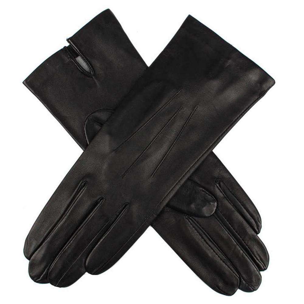 Dents Felicity Silk doublé Glants en cuir à coiffure ordinaire - noir