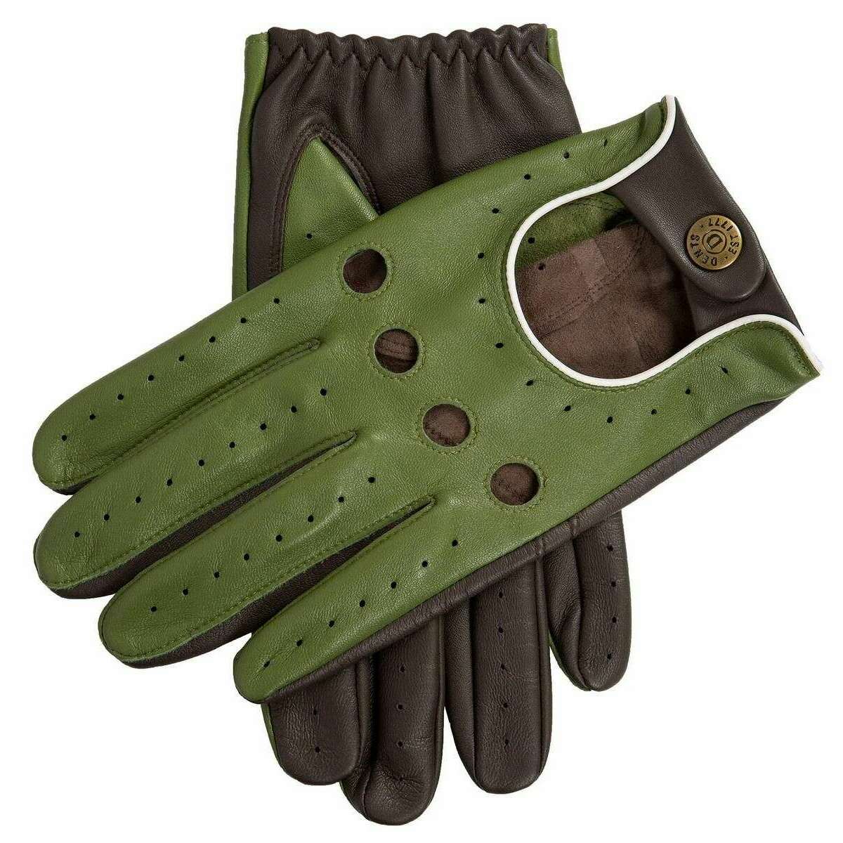 DENTS GRAND PRIX TUCT Screen Cuir Driving Gants - Lincoln Green / Brown / White