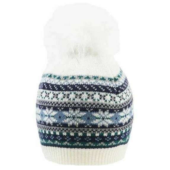 DENTS JACQUARD FAIR ISLE FAUX FURS POM POM POM CHAPLE BOBBLE - BLANC HIVER