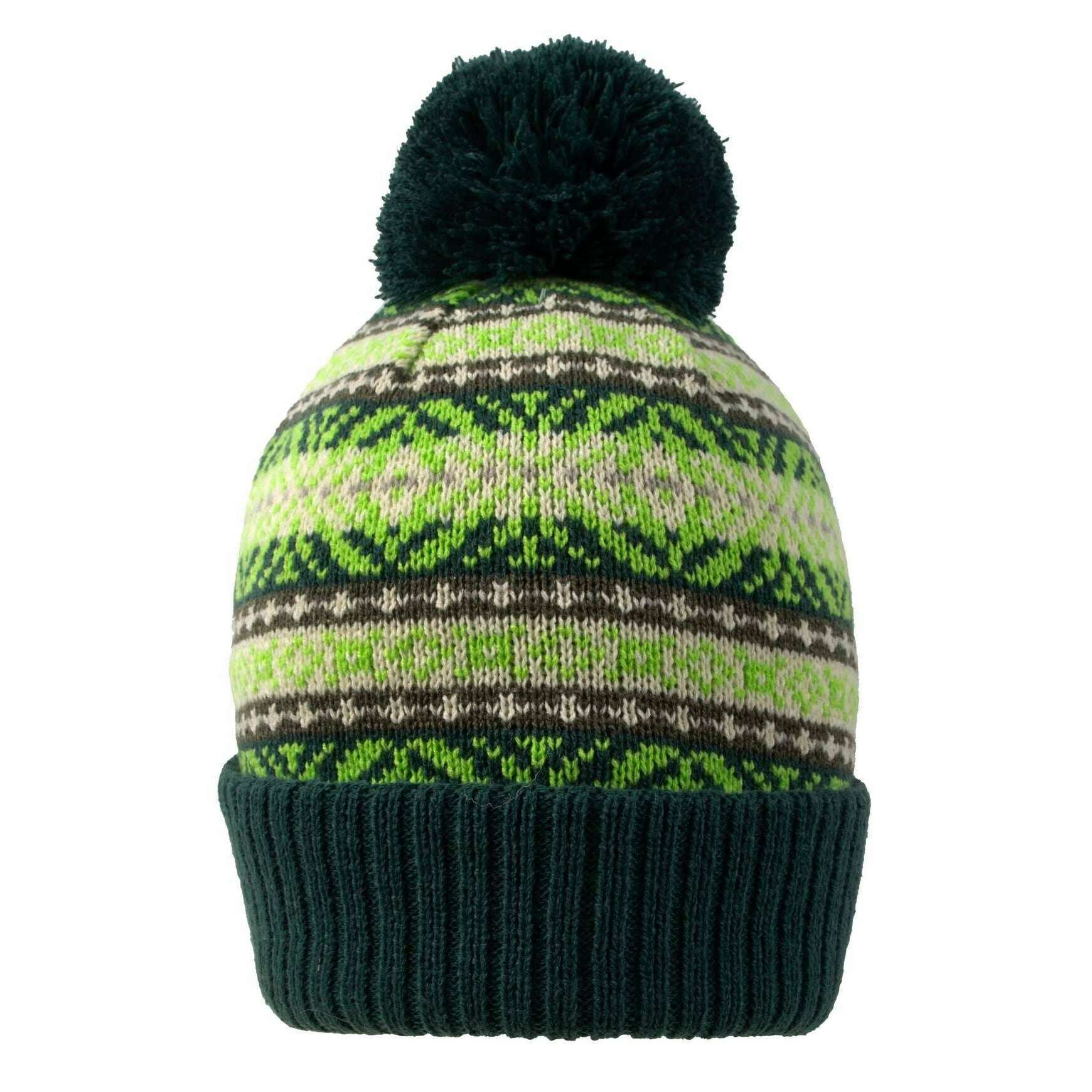 • Motif Jacquard Fair Isle, gros pompon en fil, bord retourné