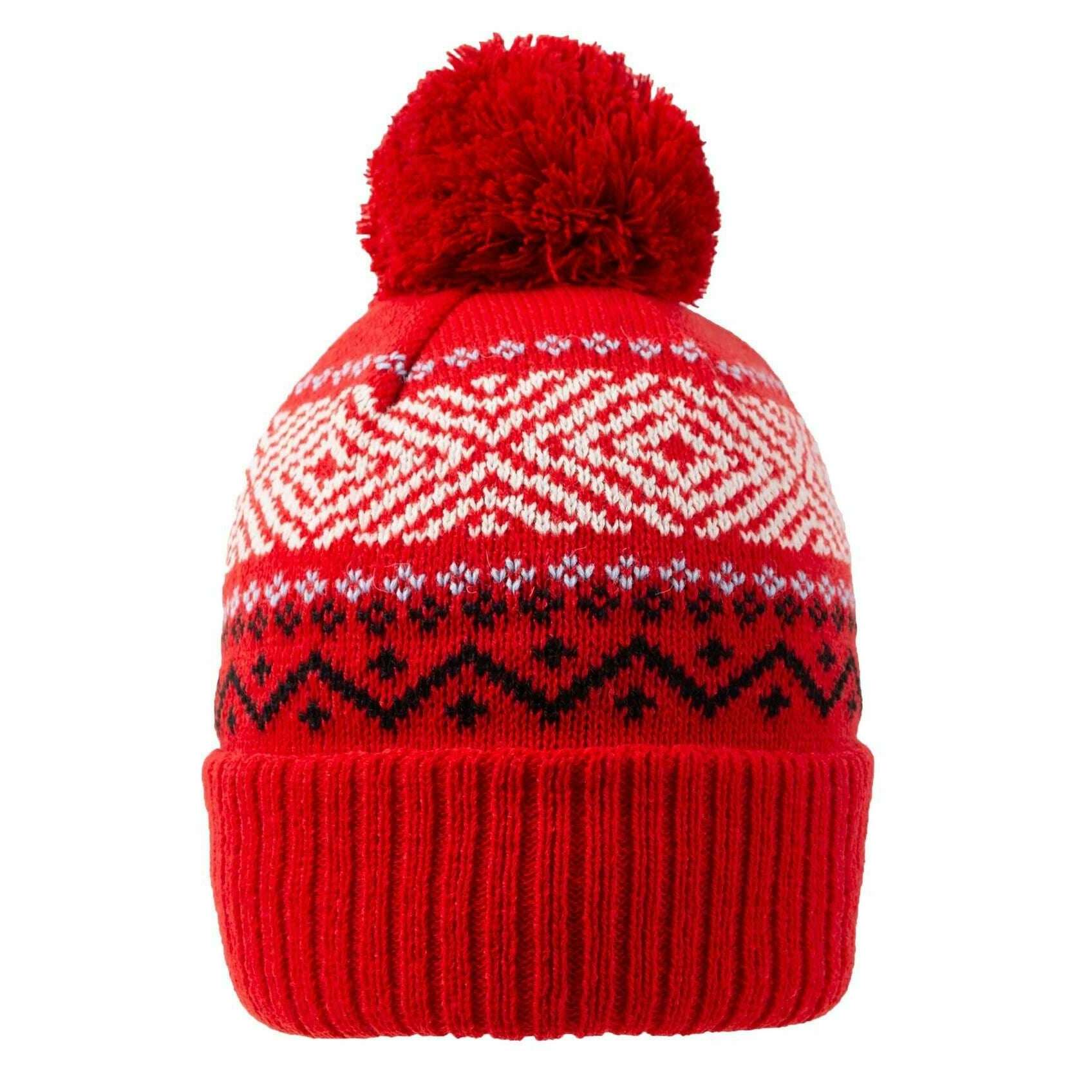 Bonnet à Pompon Tricoté Jacquard Dents - Rouge Baie