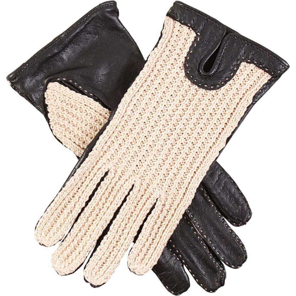 These well made women's kelly crochet back driving gloves from Dents come in a black colour and are manufactured from 100% hairsheep and cotton crochet. Also the black gloves are designed in a 2-tone pattern, All the gloves come complete with Dents tags. The Dents Kelly Crochet Back Driving Gloves - Black are a unique pair with their crochet back and leather palm. The leather on the palms is patterned to imitate peccary leather, the worlds rarest and most luxurious kind. Featured with a top vent to keep your hands at the perfect temperature. Simple yet stylish.