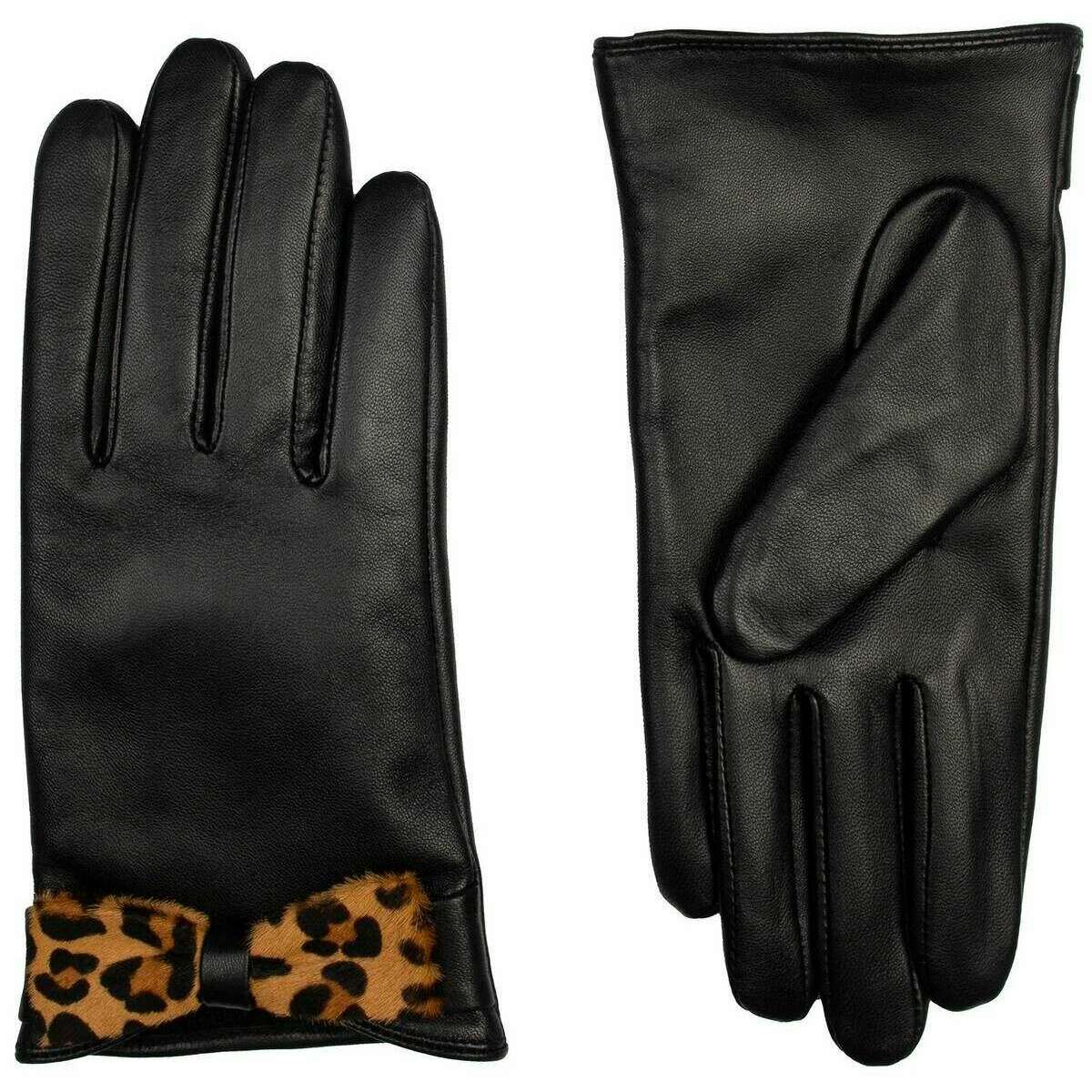 Gants en cuir Dents Laurie Bow - Léopard/Noir