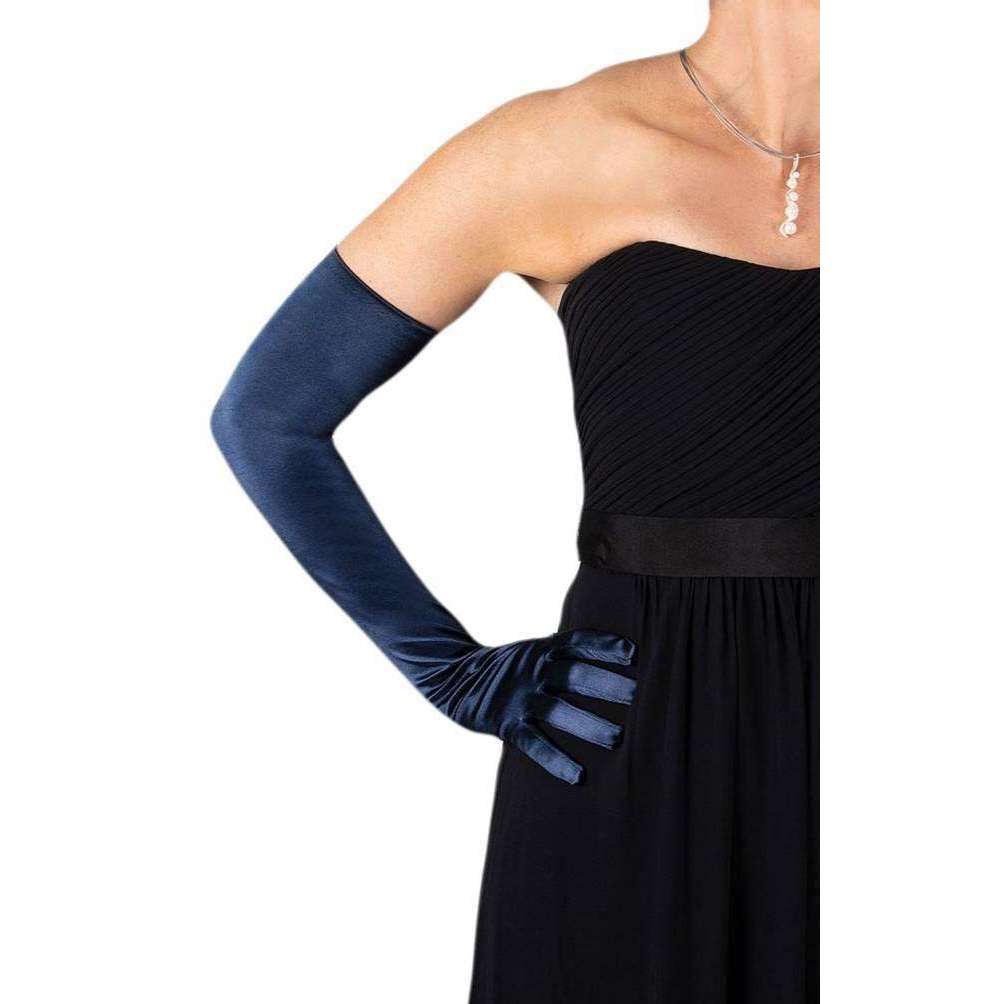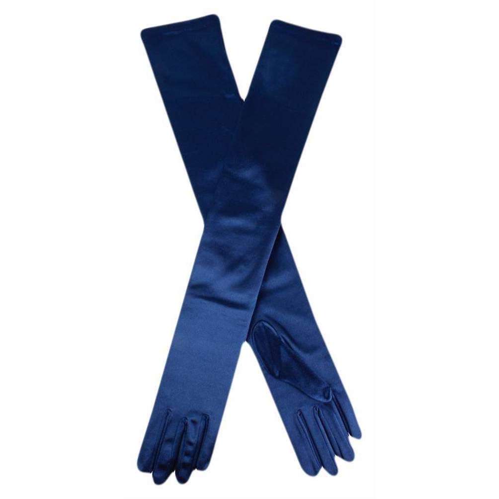 Gants du soir de la longueur des épaules de longueur du satin - marine - marine