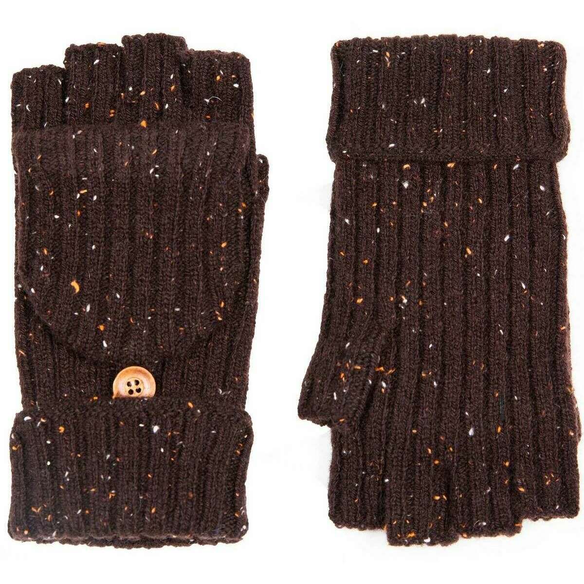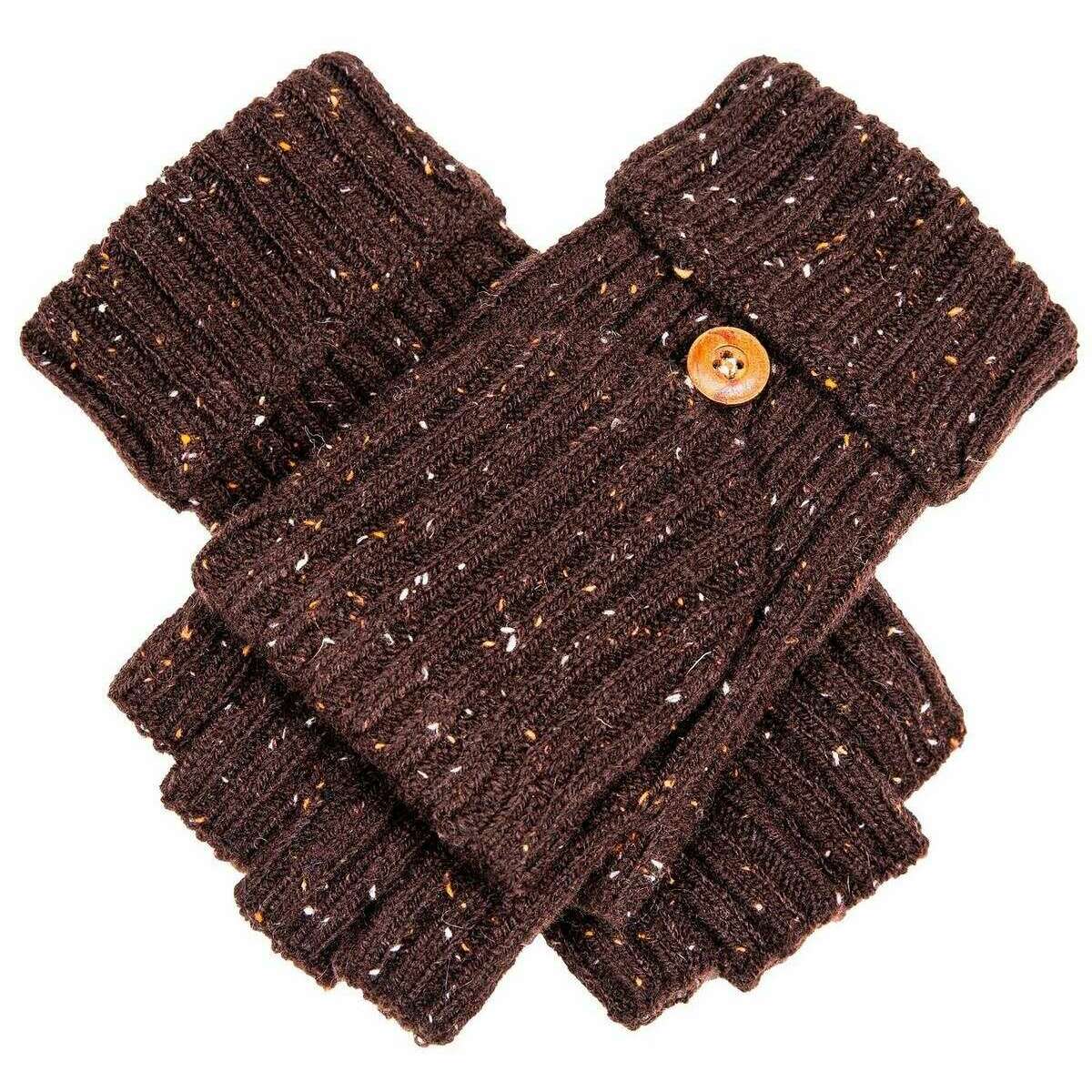DENTS MARL YARN Half Finger Gants - Chocolate Brown