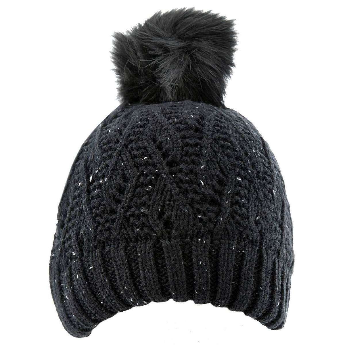 Introducing this women's marl yarn lace knit beanie by Dents, it is manufactured from 50% acrylic, 30% wool and 20% nylon in a black colour. Also the black hat is designed in a plain pattern, All the hats come complete with dents packaging. The Dents Marl Yarn Lace Knit Beanie - Black is a classic lace knit design hat with a ribbed brim, features a faux fur pom pom and a soft lining for that added detailing. This hat will provide an extra layer of warmth and comfort and will be ideal for colder days.