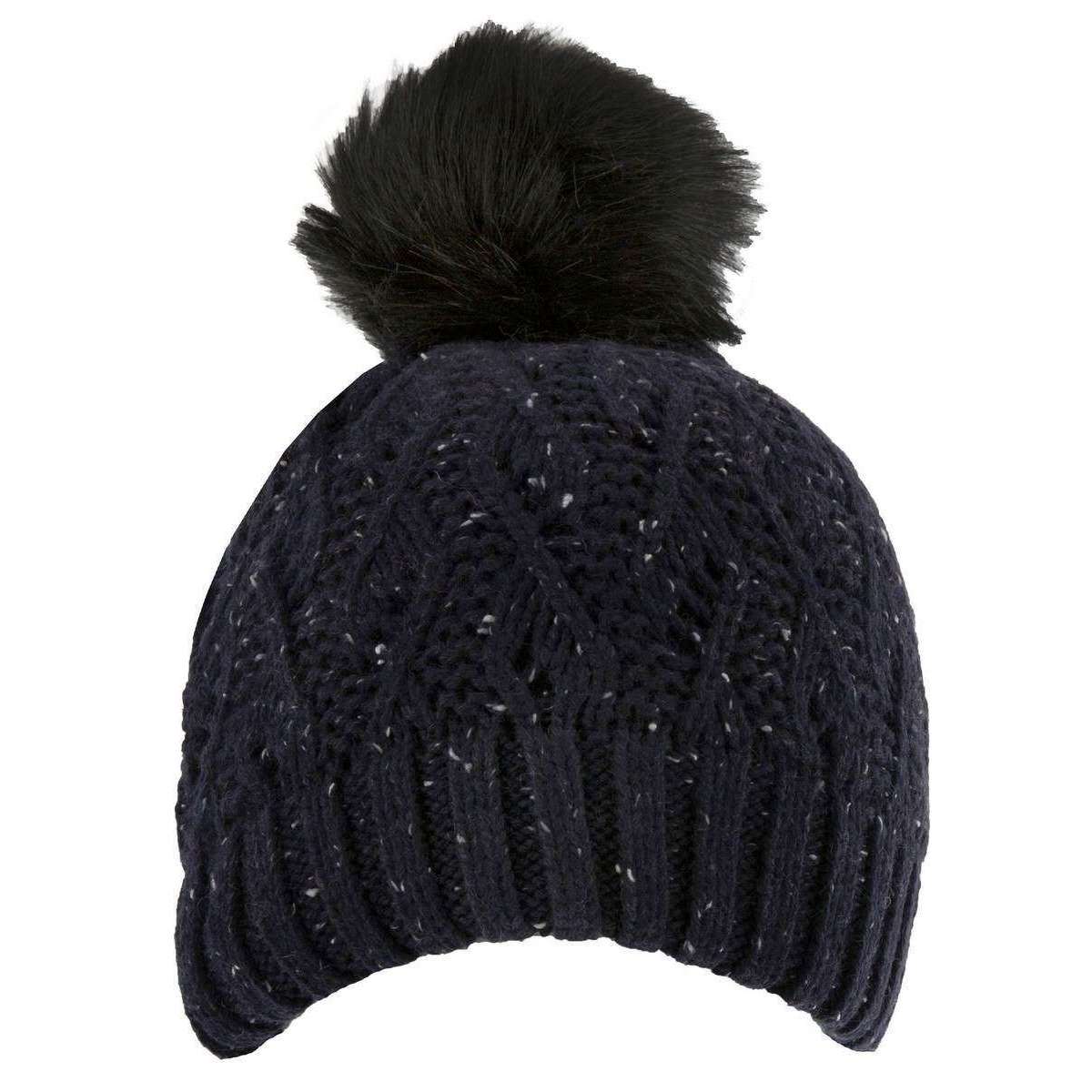 Manufactured from 50% acrylic, 30% wool and 20% nylon is this navy women's marl yarn lace knit beanie by the designer Dents. Also the navy hat is designed in a plain pattern, All the hats come complete with dents packaging. The Dents Marl Yarn Lace Knit Beanie - Navy is a classic lace knit design hat with a ribbed brim, features a faux fur pom pom and a soft lining for that added detailing. This hat will provide an extra layer of warmth and comfort and will be ideal for colder days.