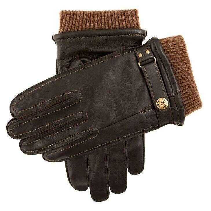 Dents Penrith Gants en cuir à manchettes en tricot en laine - marron