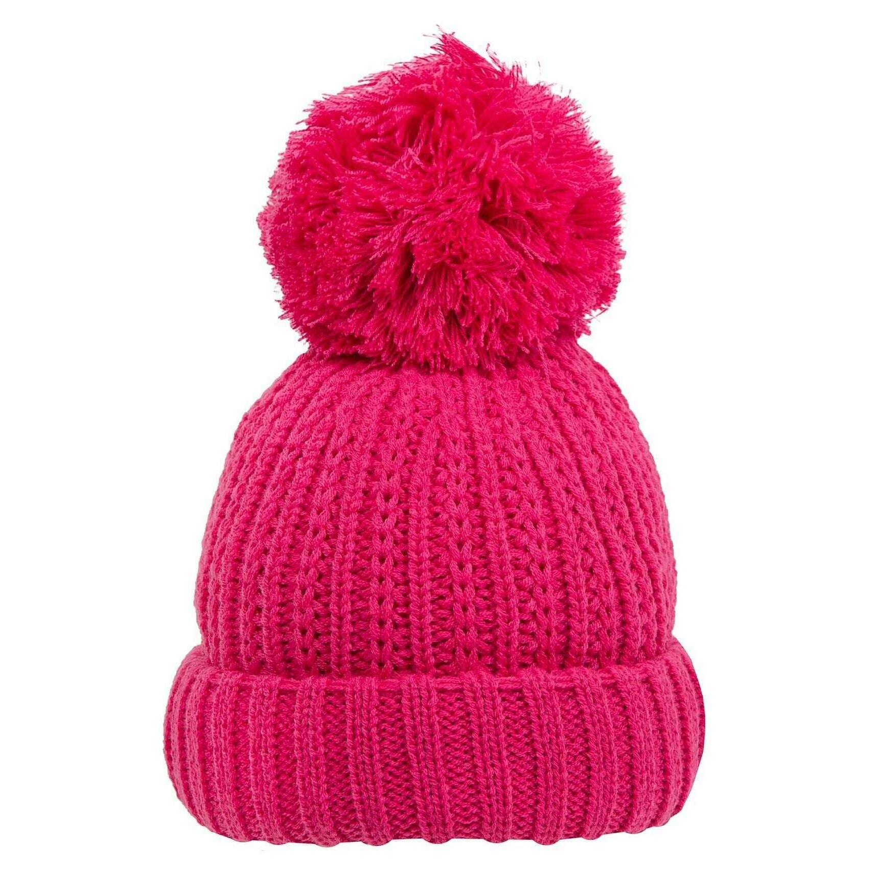 Bonnet à Pompon en Tricot Côtelé Dents - Rose Bonbon