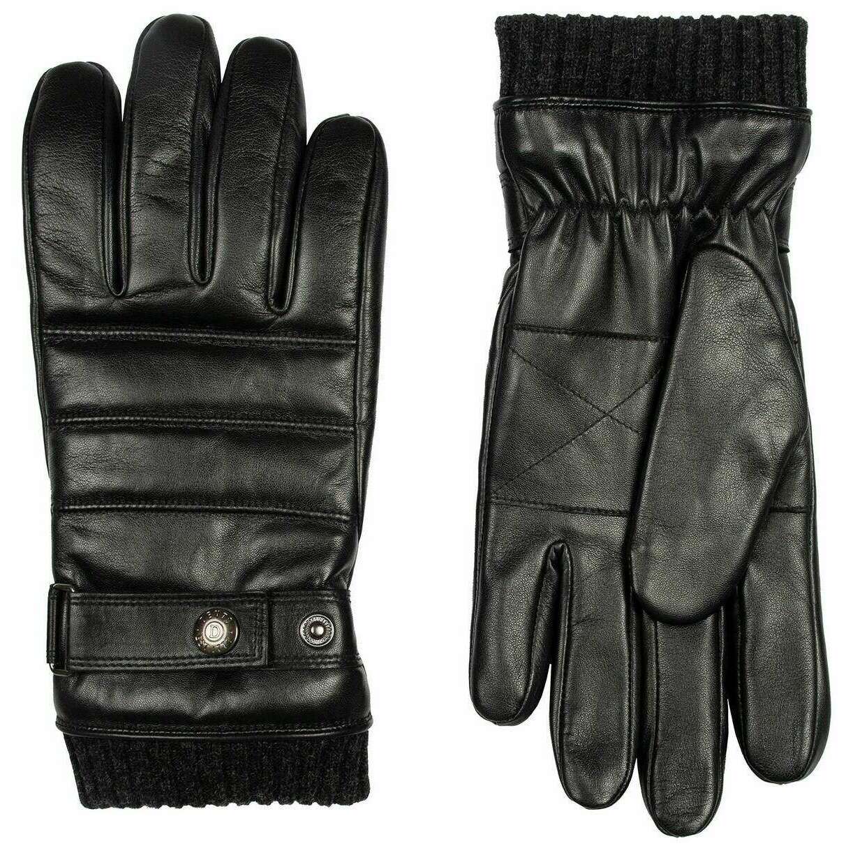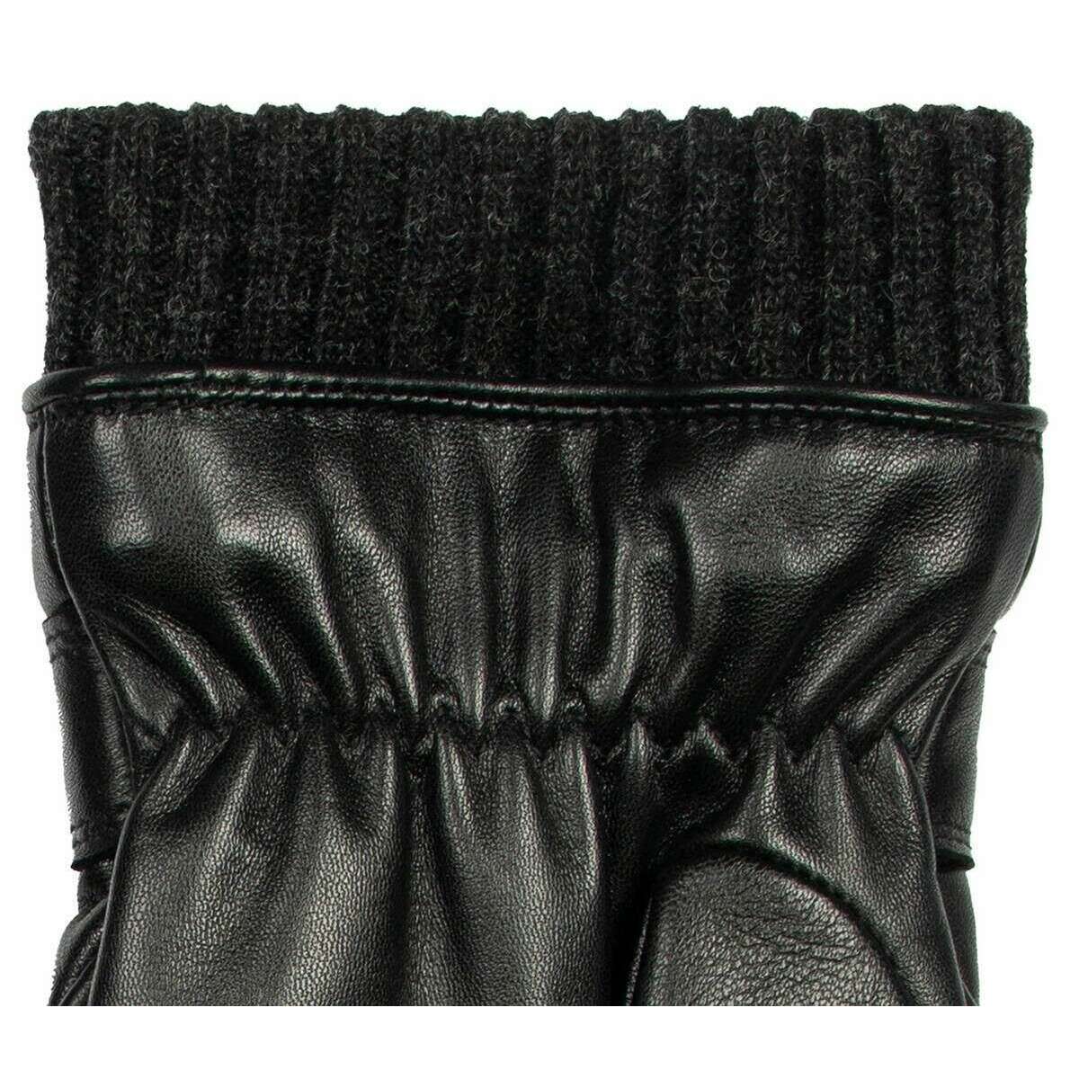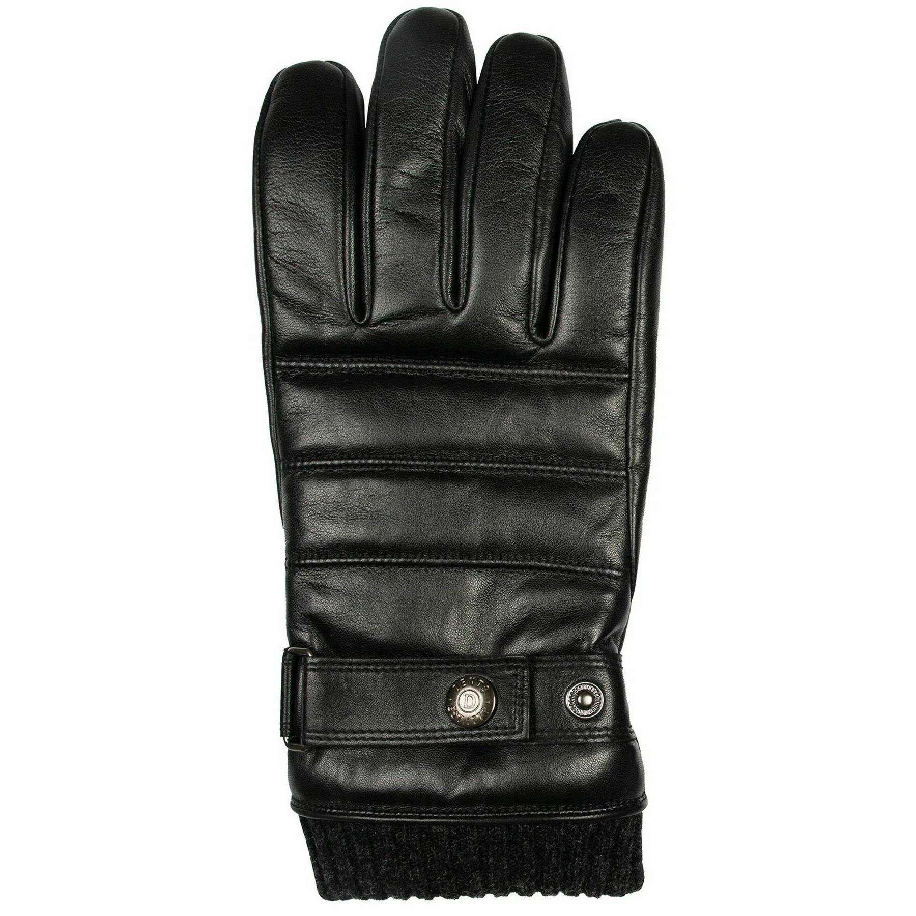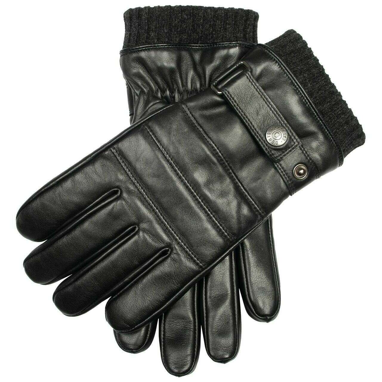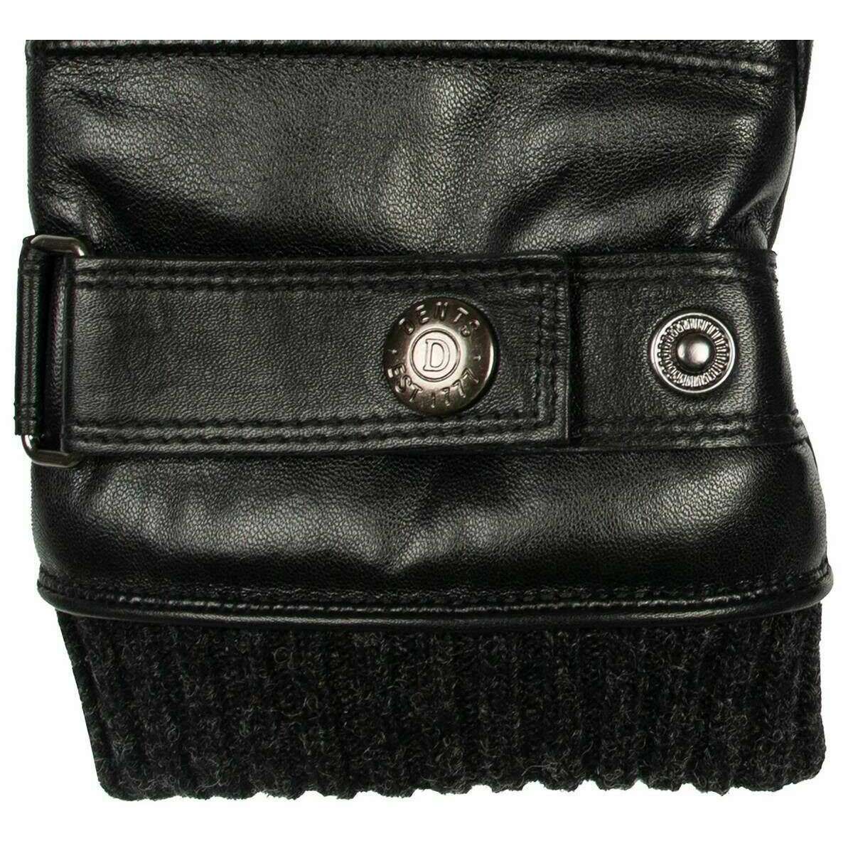 Gants en cuir avec surpiqûres tricotées Dents Skipton - Noir