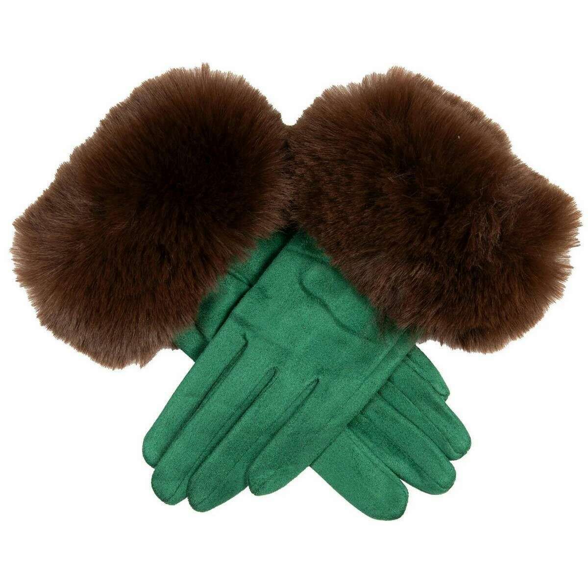 Dents Glants à écran tactile en faux daim doublé en velours - vert émeraude / brun chocolat