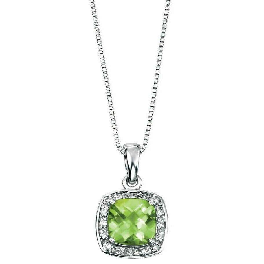 Éléments Gold Cushion Coup Diamond entouré Peridot Pendant - Silver / Green