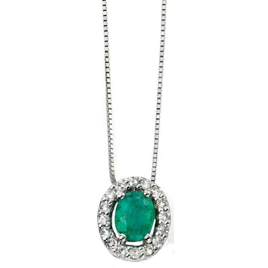 Elements Gold Emerald et Diamond Cluster Pendent - Green / Silver