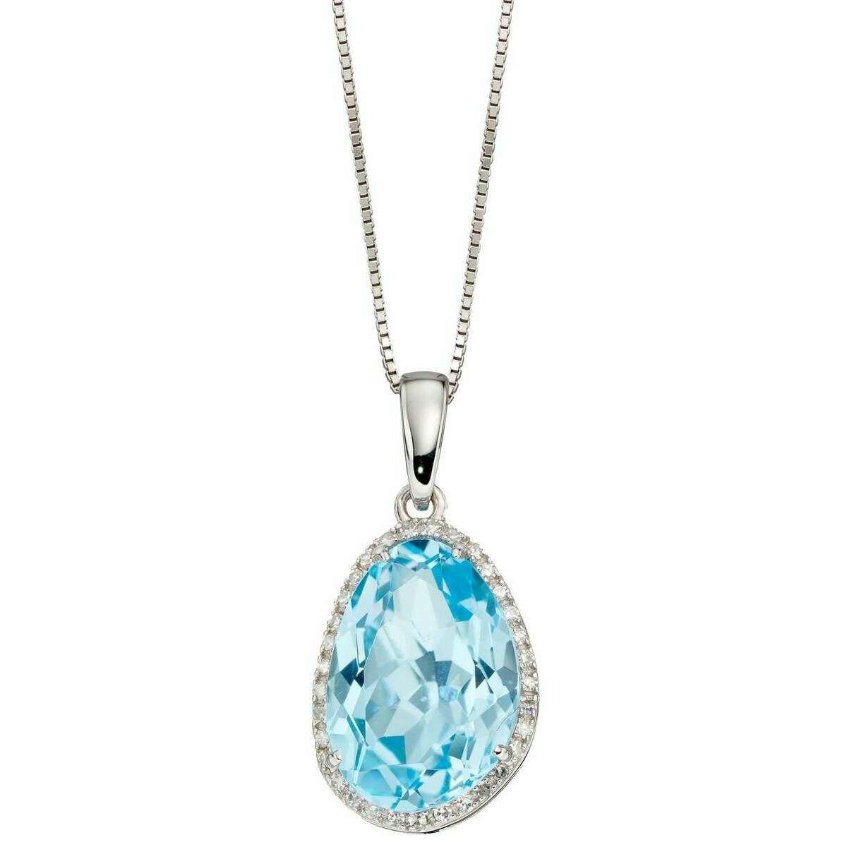 Ce pendentif de topaze et de diamant de forme irrégulière des femmes a été fabriqué à partir d'or blanc 9ct, de topaze bleu et de diamant de 0,06ct, présenté dans une couleur bleue et provient des éléments de la marque Gold. Il mesure la longueur de la chaîne: 41-46 cm. Tous les pendentifs sont complets dans une boîte cadeau d'éléments. Les éléments Gold en forme irrégulière Topaz et Diamond Pendent - Blue / Silver offre un style élégant lorsqu'il s'agit d'accessoiriser vos tenues préférées à toutes occasions. Son design frappant présente une magnifique pierre de topaze bleue bordé de diamants éblouissants. Assurez-vous d'attraper les gens que cette pièce fera une déclaration élégante.