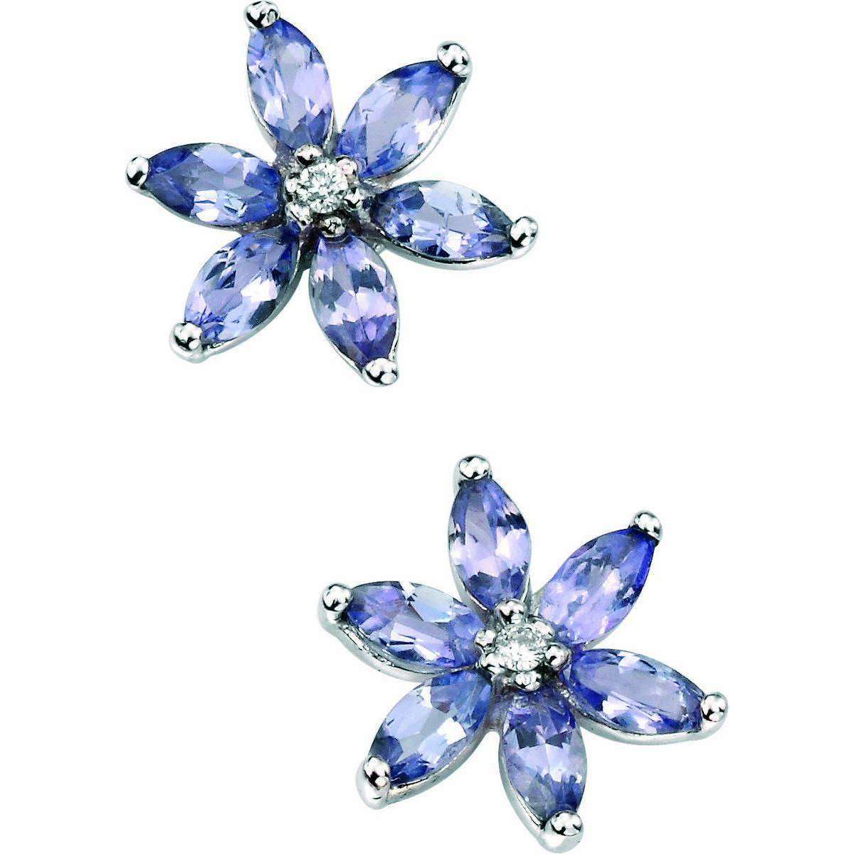 Elements Gold Kaléidoscope 9CT Tanzanite en or blanc et boucles d'oreilles de fleurs de diamant - Gold Purple / White