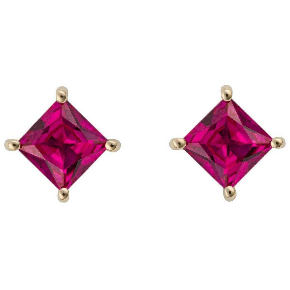 Elements Gold Princess Cut Créé des boucles d'oreilles Ruby - Rouge / Gol