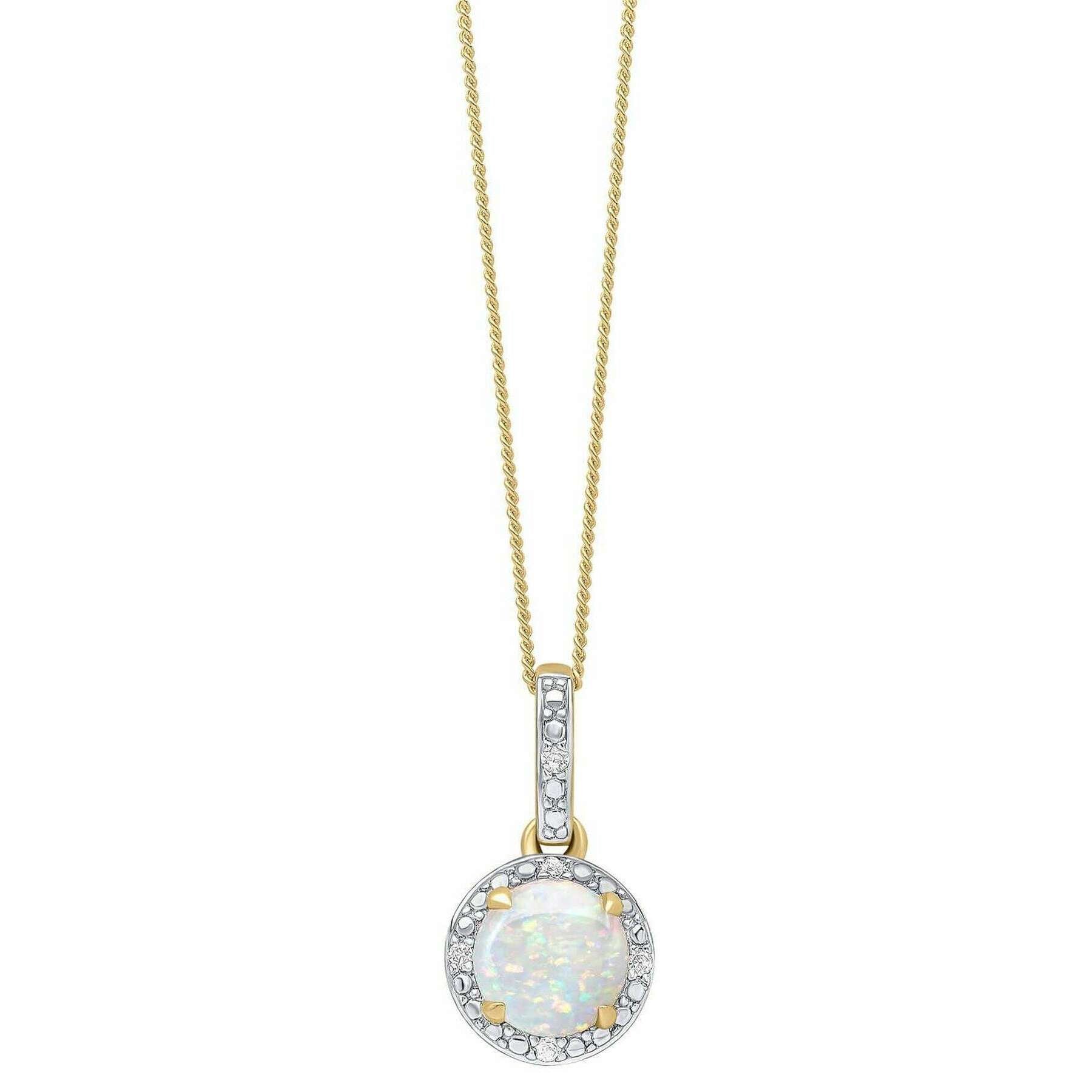Pendentif en or 9 carats avec opale entourée de diamants ronds Elements Gold - Or/Argent