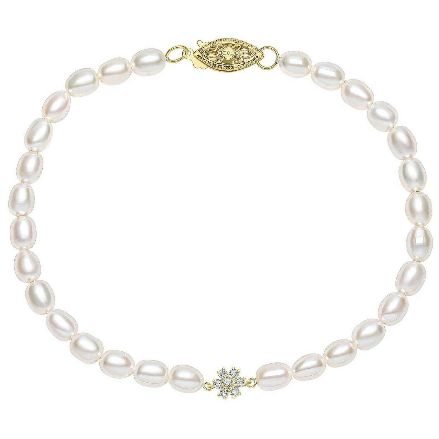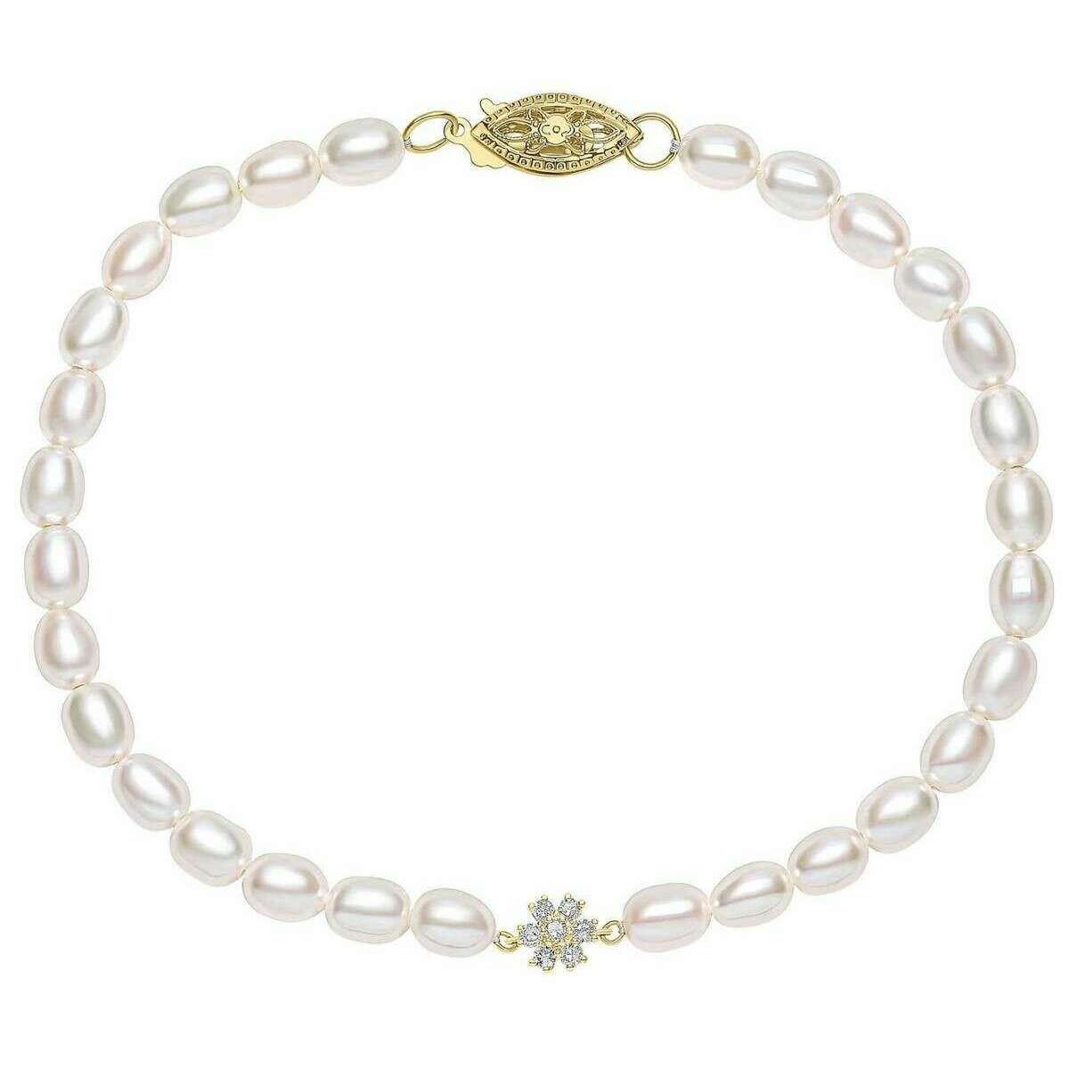Bracelet en or 9 carats avec perles et fleurs Elements Gold - Or/Blanc