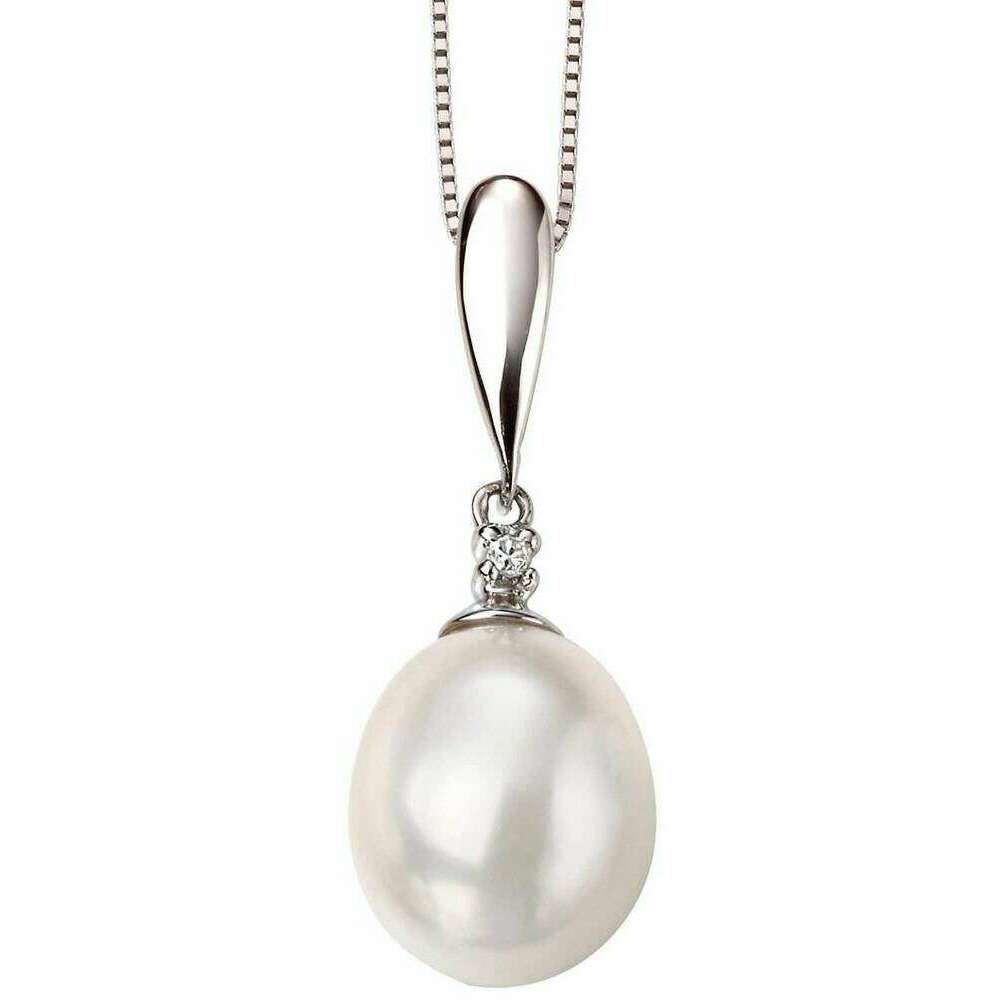 • Gol blanc 9ct, perle d'eau douce et diamant 0,01t