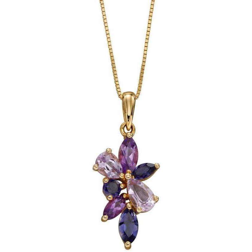 Elements Gold Teardrop Cluster Pendant - Purple / Gold