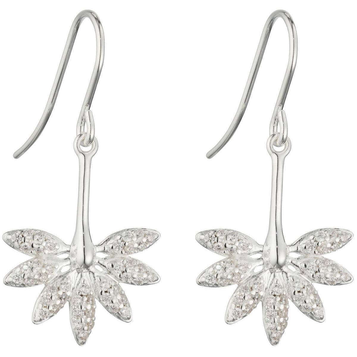 Éléments Silver CZ Horsetail Plant Fossile Drop Boucles d'oreilles - Argent