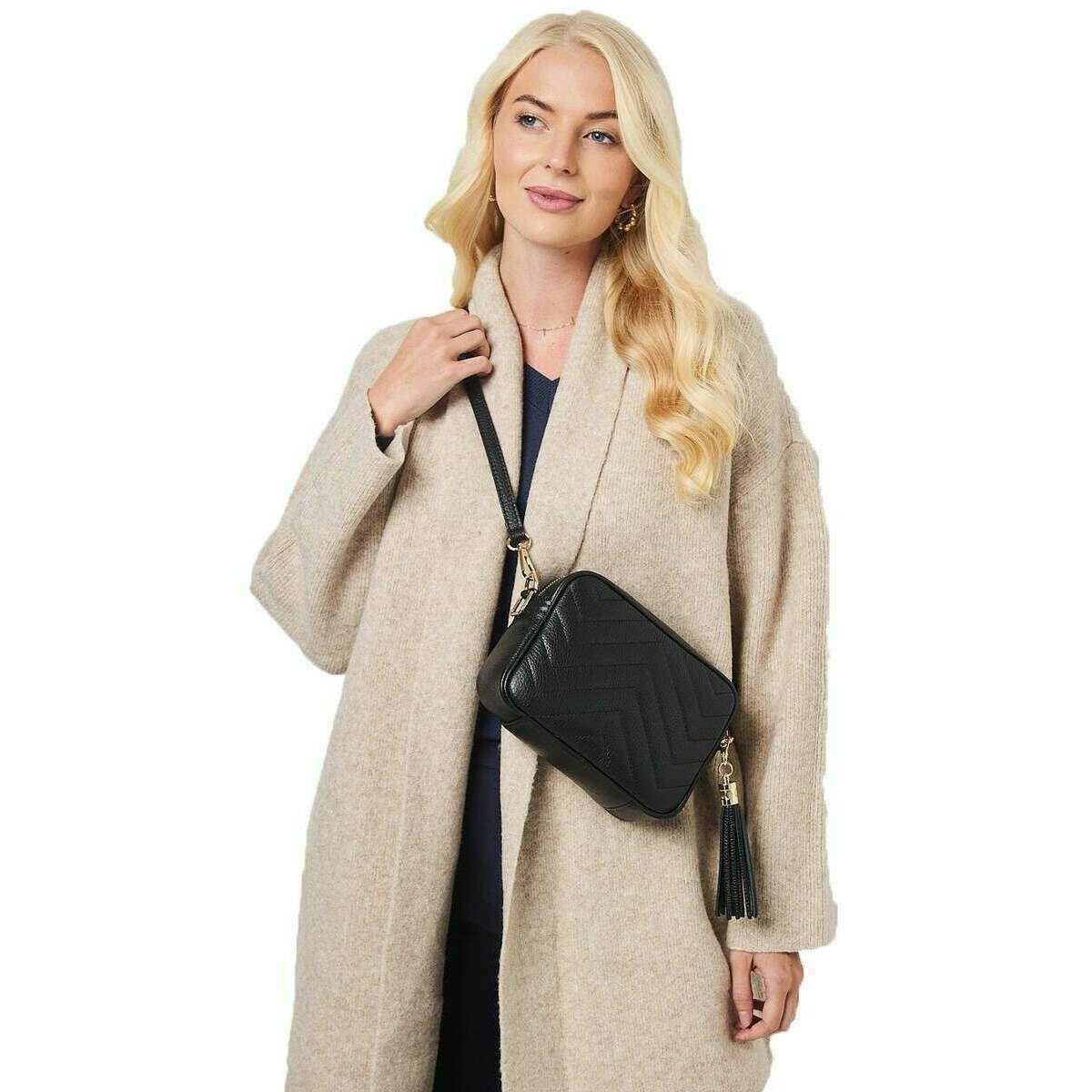 Parfait pour les femmes, ce sac crossbody Black Tandted Elie Beaumont, il est également fabriqué à partir de cuir premium 100% authentique. Il mesure 12,5 cm (hauteur) x 12,5 cm (largeur) x 8 cm (profondeur). Tous les sacs sont livrés avec Elie Beaumont Packaging. Le sac crossbody matelassé Elie Beaumont - Black Trendy et polyvalent est un incontournable à ajouter à votre collection avec les fonctionnalités magnifiques et utiles. La sangle de corps détachable peut être ajustée à votre goût en fonction de la tenue et du look que vous optez pour toutes les occasions. Le grand compartiment principal et la poche intérieure est idéal pour le stockage et l'organisation optimaux pour tout et plus dont vous avez besoin. La base à double couche renforcée, la courtepointe et les coutures latérales cousues doubles garantissent que ce sac est durable et durable. Fabriqué à partir de cuir authentique à grain de qualité supérieure est complet avec du matériel d'or et un glandtorable assorti pour une touche girly.