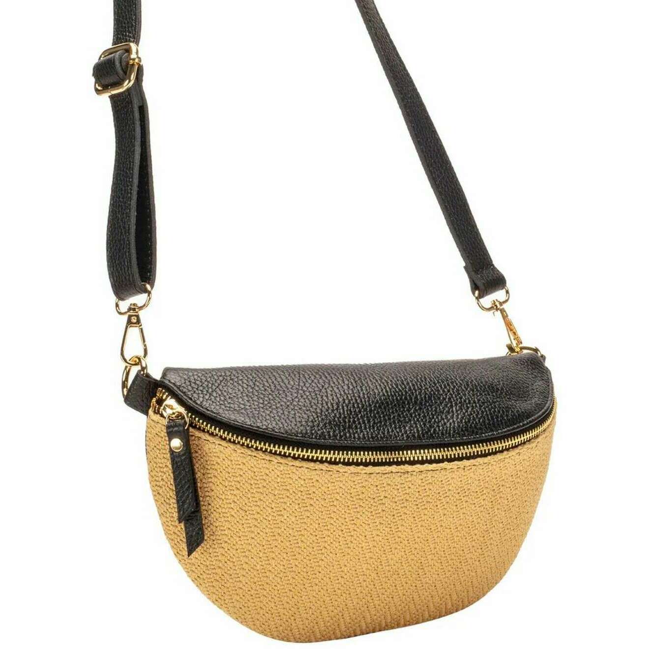 • Sangle en cuir réglable. Des raccords en métal en or subtil, un tissage en raffie, un compartiment principal, une poche zippée interne, conçue au Royaume-Uni, fini à la main