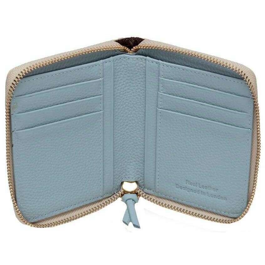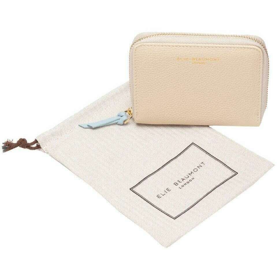 Elie Beaumont Zipper Purse - Stone Beige / Blue