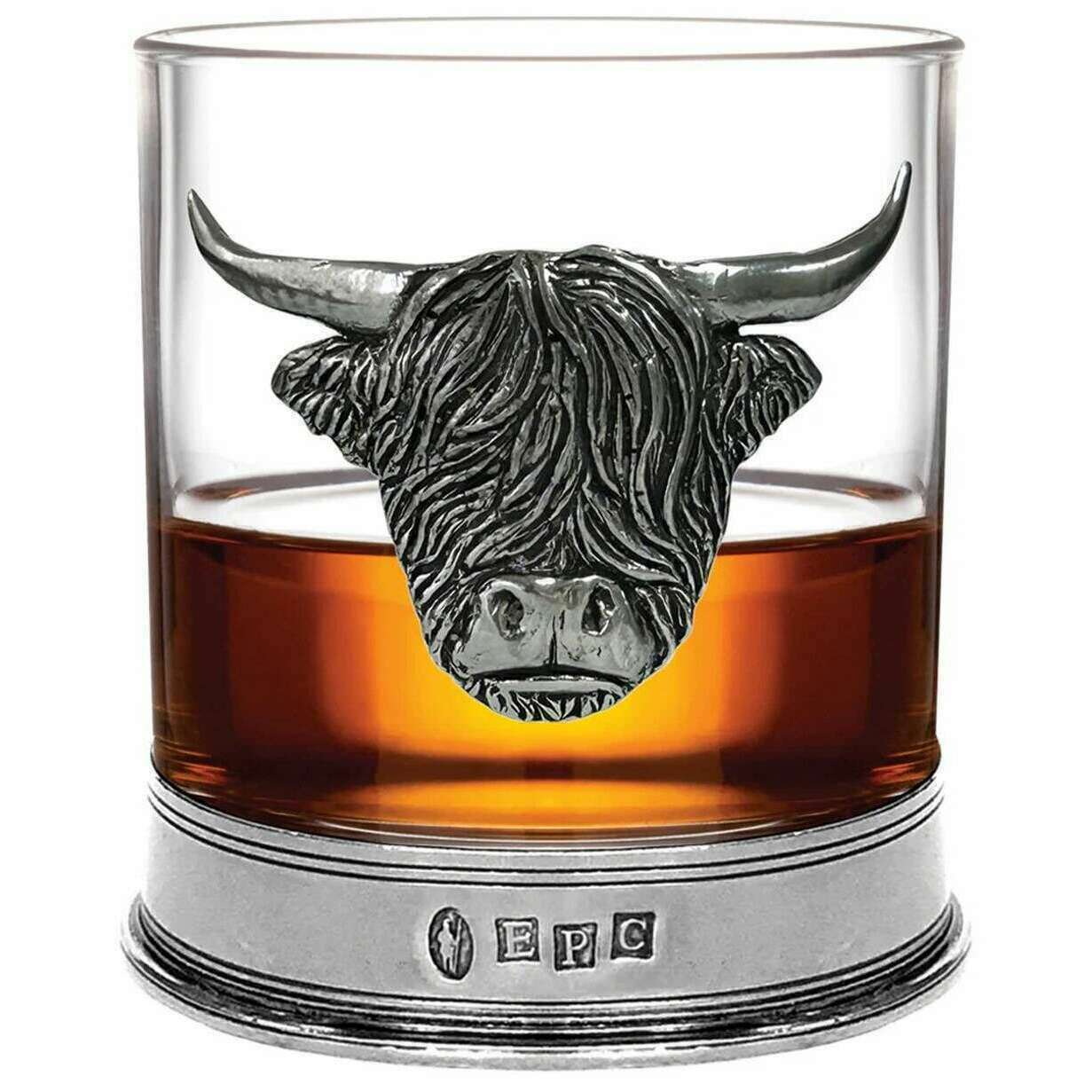 Anglais Pewter Company 11oz Highland Cow Tobbler - Silver / Clear
