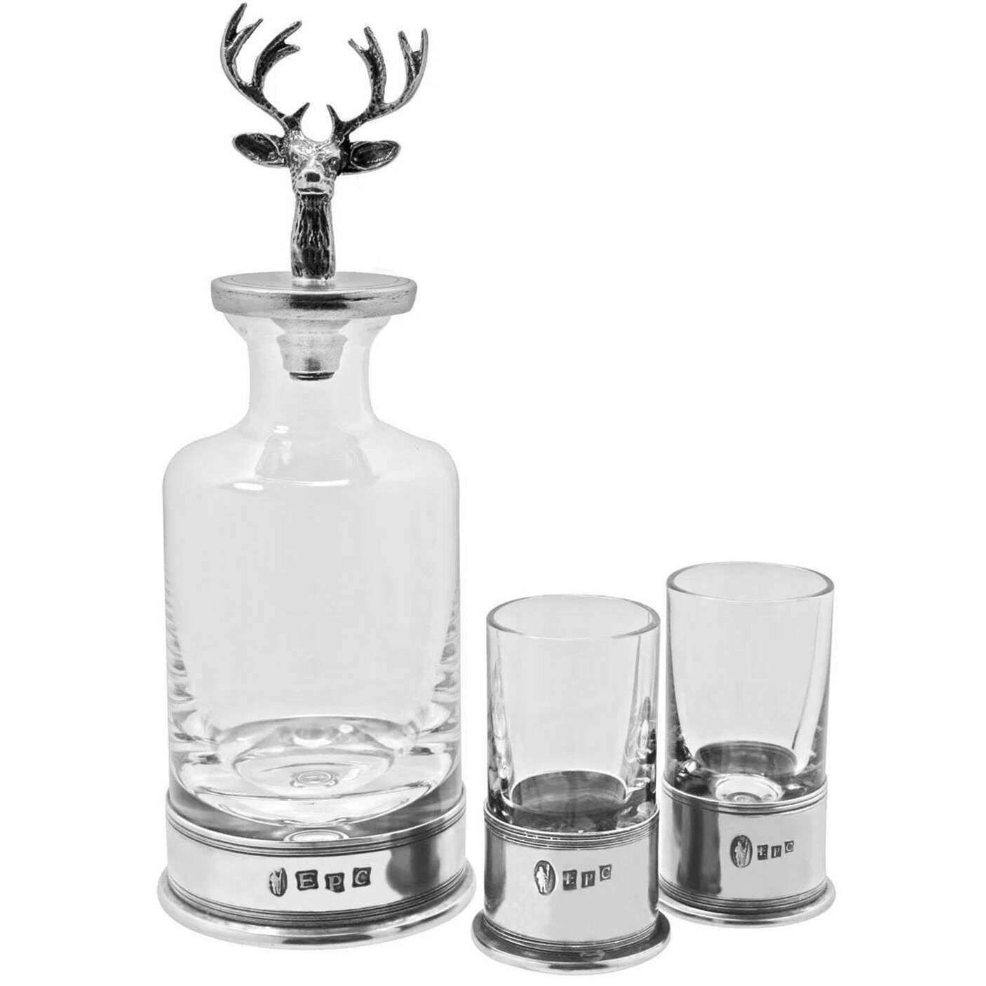 English Pewter Company 180ml Stag Mini Decanter and Shot Glass Box Box - Silver / Clear
