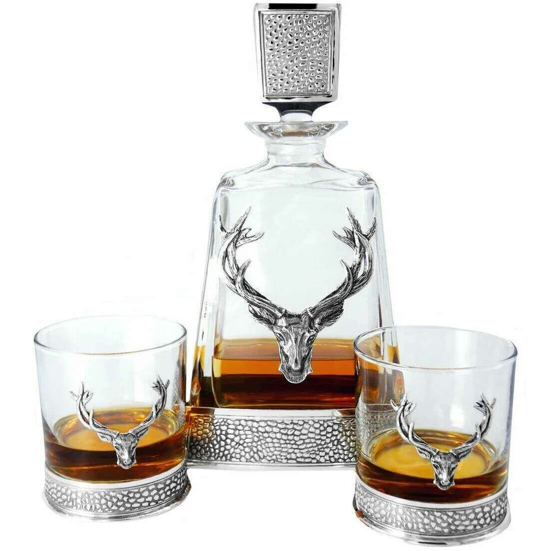 Anglais Pewter Company 600ml Regal Stag Medium Decanter - Silver / Clear