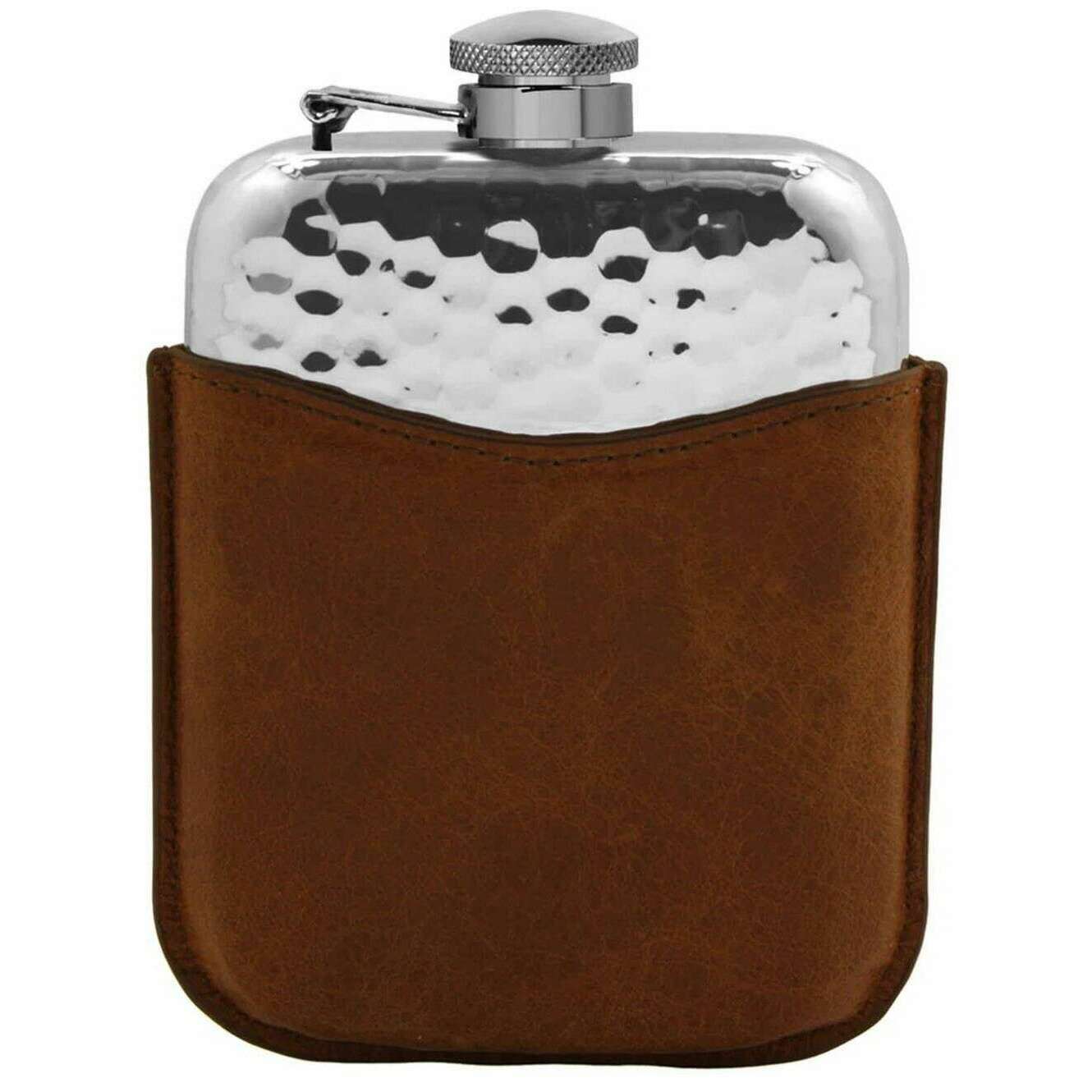 English Pewter Company 6oz Captive Top Bursed Flask and Socch - Silver / Brown