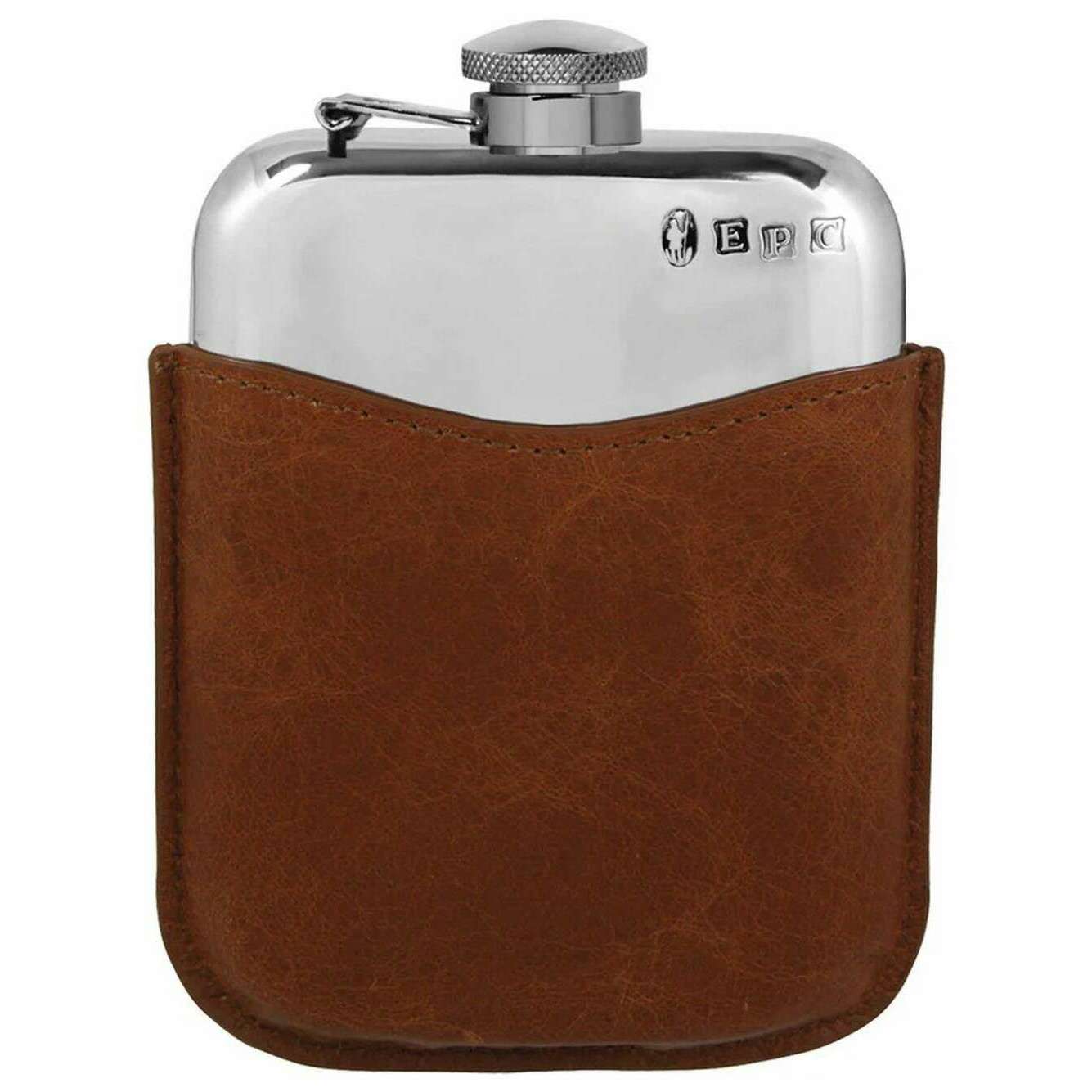 English Pewter Company 6oz Captive Top Purse Flask and Pouch - Silver / Brown