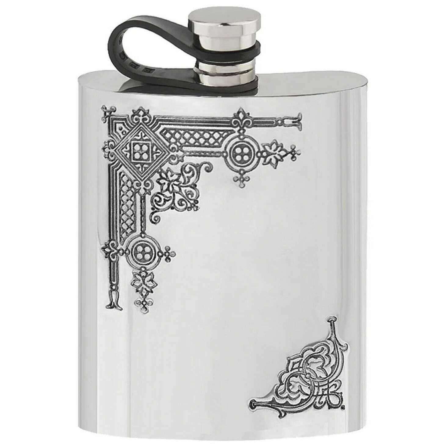 English Pewter Company 6oz Gothic Flexi Cap Hip Flask - Silver