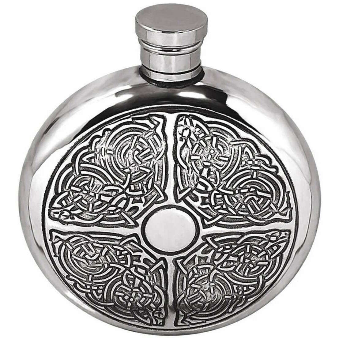 Anglais Pewter Company 6oz Round Celtic Knot Flask - Silver