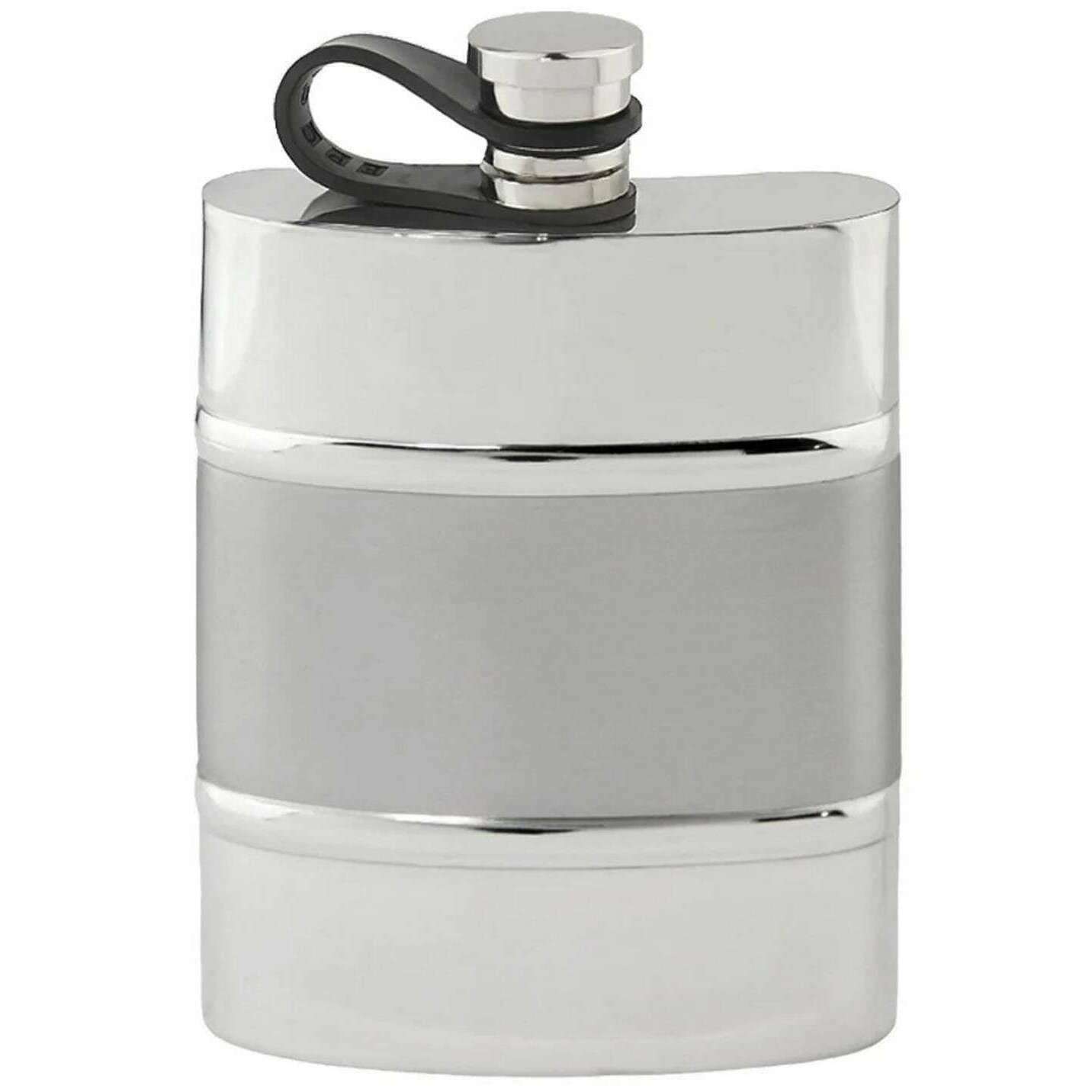 English Pewter Company 6oz Satin Band Flexi Cap Hip Flask - Silver
